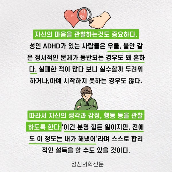 주요기사 대인기피증 사회불안장애 극복하기 [Doctor's Mail] 연속된 사업 실패, 재기를 위해 노력하지만 힘듭니다 아직은 괜찮습니다 6화 나는 언제나 완성되어가는 중이다 불안장애와 공황장애 어떻게 다른가요 수면의 질과 ADHD의 상호작용 약만으로 부족할 때, 우울증에 효과적인 운동은 이것입니다