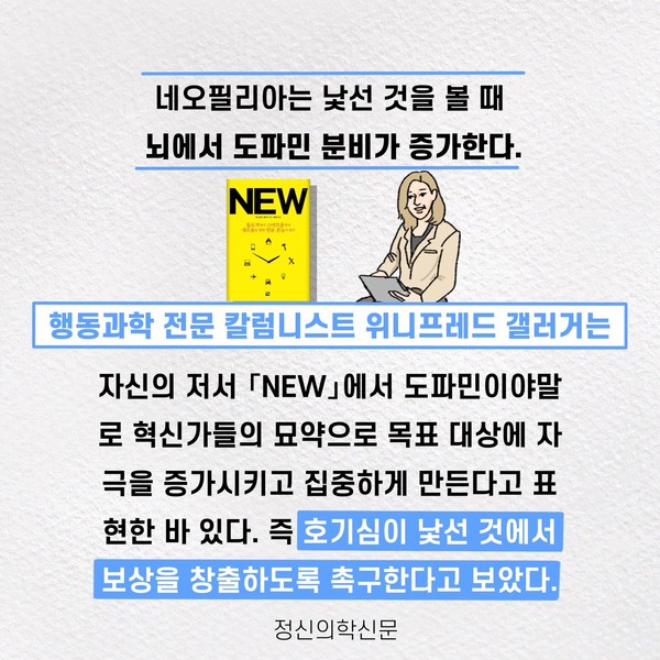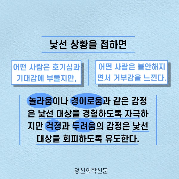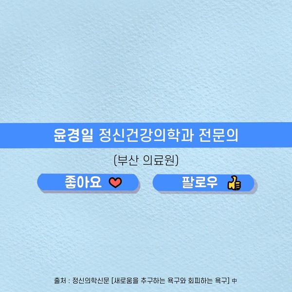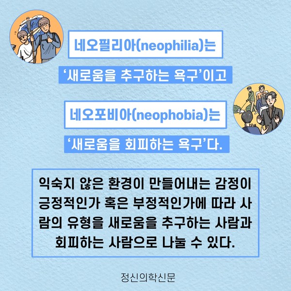 관련기사 새로움을 추구하는 욕구와 회피하는 욕구 윤경일 정신건강의학과 전문의 info.psynews@gmail.com 다른기사 보기 저작권자 © 정신의학신문 무단전재 및 재배포 금지 추천 뉴스 매 맞는 여성 증후군 - 사랑이라는 이름의 폭력이 남기는 상처 얼만큼 운동해야 우울증을 예방할까? 약만으로 부족할 때, 우울증에 효과적인 운동은 이것입니다 영웅의 숨겨진 아픔 - 소방관 트라우마 불안이 쉽게 사라지지 않는 뇌과학적 이유 [신간소개] 당신의 상처는 사적이지 않다 수면다원검사를 꼭 받아봐야 하는 사람 (Part 3) 우울증에 좋은 운동은 뭘까 댓글삭제 삭제한 댓글은 다시 복구할 수 없습니다. 그래도 삭제하시겠습니까? 비밀번호 닫기 기사 댓글 0 댓글 접기 댓글 내용입력 비회원 로그인 이름 비밀번호 댓글 내용입력 댓글쓰기 계정을 선택하시면 로그인·계정인증을 통해 댓글을 남기실 수 있습니다. 회원 로그인 비회원 글쓰기 이름 비밀번호 자동등록방지 로그인 옵션 창닫기 주요기사 대인기피증 사회불안장애 극복하기 [Doctor's Mail] 연속된 사업 실패, 재기를 위해 노력하지만 힘듭니다 아직은 괜찮습니다 6화 나는 언제나 완성되어가는 중이다 불안장애와 공황장애 어떻게 다른가요 수면의 질과 ADHD의 상호작용 약만으로 부족할 때, 우울증에 효과적인 운동은 이것입니다