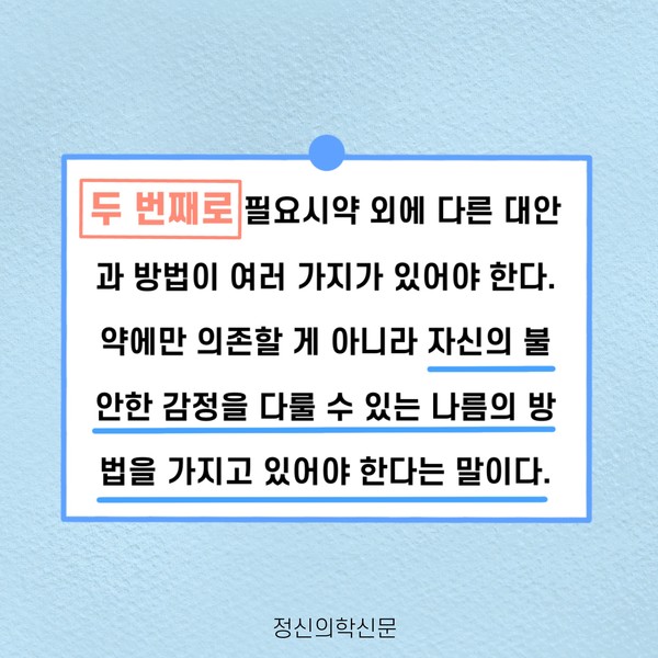 정신과 약을 복용하는 군인, 어떤 생각이 드시나요? [카드뉴스] 인생이 잘 안 풀리는 사람들의 무의식적인 말버릇 [카드뉴스] 젊은 꼰대 - 수직적 인간관계에 익숙한 사람들 [카드뉴스] 유독 걱정이 많은 사람이 기억하면 좋을 습관 퇴근 후 만사가 귀찮고 재미없다면?