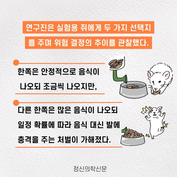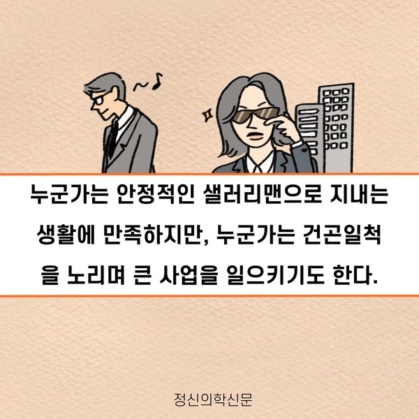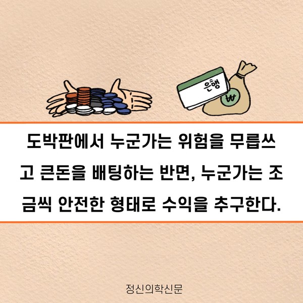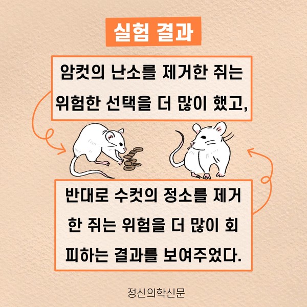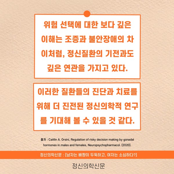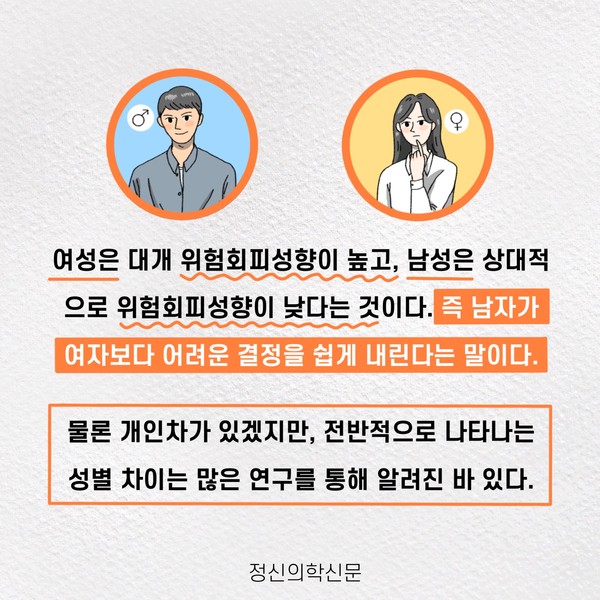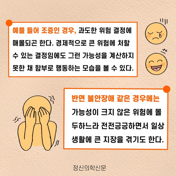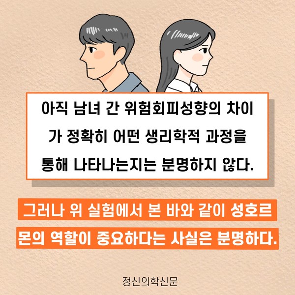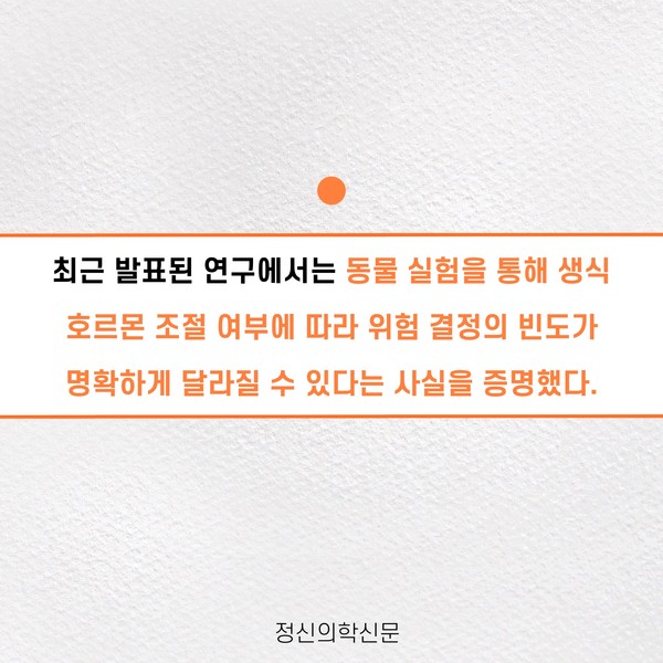 관련기사 남자는 배짱이 두둑하고, 여자는 소심하다? 키워드 #위험회피성향 #리스크테이킹 #조증 #불안장애 유승준 기자 info.psynews@gmail.com 다른기사 보기 저작권자 © 정신의학신문 무단전재 및 재배포 금지 추천 뉴스 매 맞는 여성 증후군 - 사랑이라는 이름의 폭력이 남기는 상처 얼만큼 운동해야 우울증을 예방할까? 영웅의 숨겨진 아픔 - 소방관 트라우마 약만으로 부족할 때, 우울증에 효과적인 운동은 이것입니다 불안이 쉽게 사라지지 않는 뇌과학적 이유 [신간소개] 당신의 상처는 사적이지 않다 수면다원검사를 꼭 받아봐야 하는 사람 (Part 3) 우울증에 좋은 운동은 뭘까 댓글삭제 삭제한 댓글은 다시 복구할 수 없습니다. 그래도 삭제하시겠습니까? 비밀번호 닫기 기사 댓글 0 댓글 접기 댓글 내용입력 비회원 로그인 이름 비밀번호 댓글 내용입력 댓글쓰기 계정을 선택하시면 로그인·계정인증을 통해 댓글을 남기실 수 있습니다. 회원 로그인 비회원 글쓰기 이름 비밀번호 자동등록방지 로그인 옵션 창닫기 주요기사 대인기피증 사회불안장애 극복하기 [Doctor's Mail] 연속된 사업 실패, 재기를 위해 노력하지만 힘듭니다 아직은 괜찮습니다 6화 나는 언제나 완성되어가는 중이다 불안장애와 공황장애 어떻게 다른가요 수면의 질과 ADHD의 상호작용 약만으로 부족할 때, 우울증에 효과적인 운동은 이것입니다