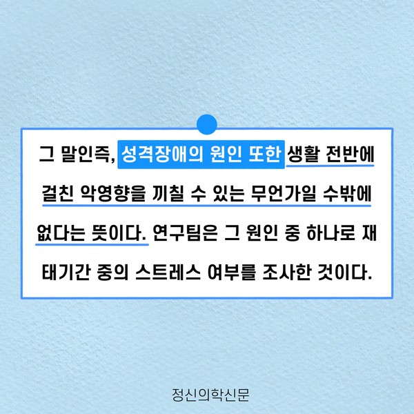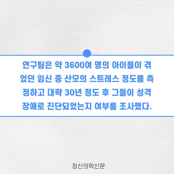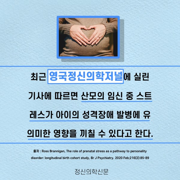 관련기사 엄마 뱃속에서부터 결정되는 성격? 키워드 #태교 #정서발달 #성격장애 #임신중스트레스 이주원 기자 info.psynews@gmail.com 다른기사 보기 저작권자 © 정신의학신문 무단전재 및 재배포 금지 추천 뉴스 매 맞는 여성 증후군 - 사랑이라는 이름의 폭력이 남기는 상처 얼만큼 운동해야 우울증을 예방할까? 영웅의 숨겨진 아픔 - 소방관 트라우마 약만으로 부족할 때, 우울증에 효과적인 운동은 이것입니다 불안이 쉽게 사라지지 않는 뇌과학적 이유 [신간소개] 당신의 상처는 사적이지 않다 수면다원검사를 꼭 받아봐야 하는 사람 (Part 3) 우울증에 좋은 운동은 뭘까 댓글삭제 삭제한 댓글은 다시 복구할 수 없습니다. 그래도 삭제하시겠습니까? 비밀번호 닫기 기사 댓글 0 댓글 접기 댓글 내용입력 비회원 로그인 이름 비밀번호 댓글 내용입력 댓글쓰기 계정을 선택하시면 로그인·계정인증을 통해 댓글을 남기실 수 있습니다. 회원 로그인 비회원 글쓰기 이름 비밀번호 자동등록방지 로그인 옵션 창닫기 주요기사 대인기피증 사회불안장애 극복하기 [Doctor's Mail] 연속된 사업 실패, 재기를 위해 노력하지만 힘듭니다 아직은 괜찮습니다 6화 나는 언제나 완성되어가는 중이다 불안장애와 공황장애 어떻게 다른가요 수면의 질과 ADHD의 상호작용 약만으로 부족할 때, 우울증에 효과적인 운동은 이것입니다