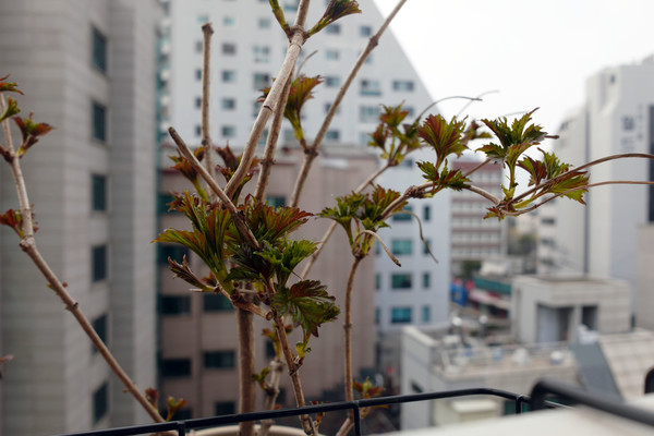 지난해에 바깥에 뒀던 식물들을 사실 나는 포기했다. 포대자루라도 둘러줬어야 이 추운 나라의 겨울을 이겨낼 수 있었을 텐데…, 그 시기의 어둠을 이겨내지 못했다. ‘그냥, 나 때문에‘, ‘나라도 살려고’ 포기했다. 겨울엔 본래 식물들이 아주 적은 양의 물 만을 뿌리에 남겨두고 그대로 멈춘다. 실내 식물 친구들도 조절해 줘야 한다. 그런데 물 한 번 준 적 없는 ‘바깥’ 식물들이 가끔 오는 눈을 녹여 먹고, 가끔 오는 비를 마시고, 살아냈다. 새싹이 움틀 자리를 보여줬다.