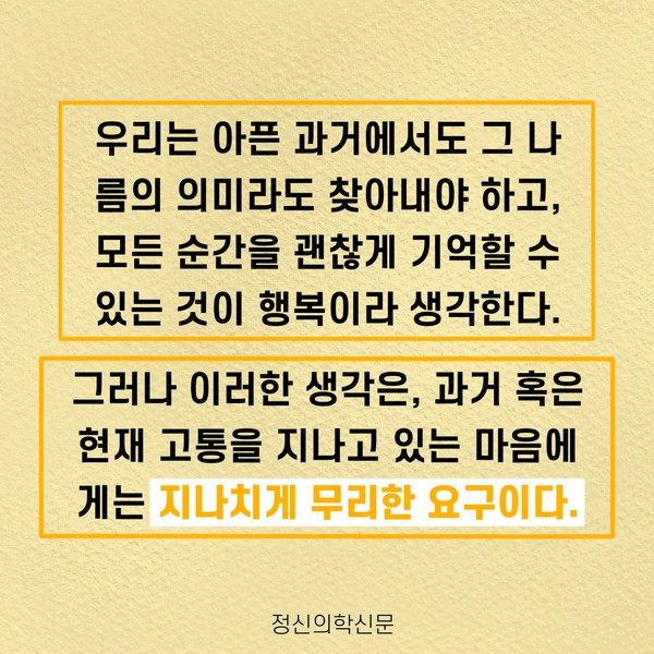관련기사 과거를 미화할 순 없지만, 그때의 나를 만난다면 키워드 #트라우마 이두형 정신건강의학과 전문의 info.psynews@gmail.com 다른기사 보기 저작권자 © 정신의학신문 무단전재 및 재배포 금지 추천 뉴스 매 맞는 여성 증후군 - 사랑이라는 이름의 폭력이 남기는 상처 얼만큼 운동해야 우울증을 예방할까? 약만으로 부족할 때, 우울증에 효과적인 운동은 이것입니다 영웅의 숨겨진 아픔 - 소방관 트라우마 불안이 쉽게 사라지지 않는 뇌과학적 이유 [신간소개] 당신의 상처는 사적이지 않다 수면다원검사를 꼭 받아봐야 하는 사람 (Part 3) 우울증에 좋은 운동은 뭘까 댓글삭제 삭제한 댓글은 다시 복구할 수 없습니다. 그래도 삭제하시겠습니까? 비밀번호 닫기 기사 댓글 0 댓글 접기 댓글 내용입력 비회원 로그인 이름 비밀번호 댓글 내용입력 댓글쓰기 계정을 선택하시면 로그인·계정인증을 통해 댓글을 남기실 수 있습니다. 회원 로그인 비회원 글쓰기 이름 비밀번호 자동등록방지 로그인 옵션 창닫기 주요기사 대인기피증 사회불안장애 극복하기 [Doctor's Mail] 연속된 사업 실패, 재기를 위해 노력하지만 힘듭니다 아직은 괜찮습니다 6화 나는 언제나 완성되어가는 중이다 불안장애와 공황장애 어떻게 다른가요 수면의 질과 ADHD의 상호작용 약만으로 부족할 때, 우울증에 효과적인 운동은 이것입니다