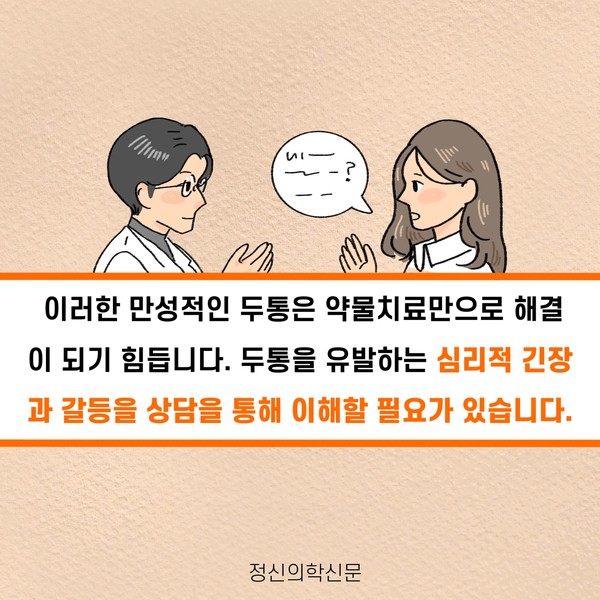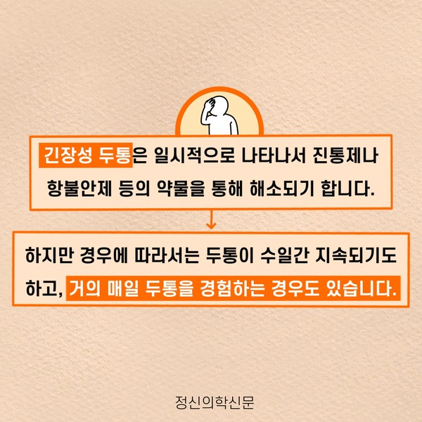 관련기사 두통의 근원 스트레스 키워드 #편두통 #스트레스 #만성두통 이인수 정신건강의학과 전문의 info@psynews.co.kr 다른기사 보기 저작권자 © 정신의학신문 무단전재 및 재배포 금지 추천 뉴스 매 맞는 여성 증후군 - 사랑이라는 이름의 폭력이 남기는 상처 얼만큼 운동해야 우울증을 예방할까? 약만으로 부족할 때, 우울증에 효과적인 운동은 이것입니다 영웅의 숨겨진 아픔 - 소방관 트라우마 불안이 쉽게 사라지지 않는 뇌과학적 이유 [신간소개] 당신의 상처는 사적이지 않다 수면다원검사를 꼭 받아봐야 하는 사람 (Part 3) 우울증에 좋은 운동은 뭘까 댓글삭제 삭제한 댓글은 다시 복구할 수 없습니다. 그래도 삭제하시겠습니까? 비밀번호 닫기 기사 댓글 0 댓글 접기 댓글 내용입력 비회원 로그인 이름 비밀번호 댓글 내용입력 댓글쓰기 계정을 선택하시면 로그인·계정인증을 통해 댓글을 남기실 수 있습니다. 회원 로그인 비회원 글쓰기 이름 비밀번호 자동등록방지 로그인 옵션 창닫기 주요기사 대인기피증 사회불안장애 극복하기 [Doctor's Mail] 연속된 사업 실패, 재기를 위해 노력하지만 힘듭니다 아직은 괜찮습니다 6화 나는 언제나 완성되어가는 중이다 불안장애와 공황장애 어떻게 다른가요 수면의 질과 ADHD의 상호작용 약만으로 부족할 때, 우울증에 효과적인 운동은 이것입니다