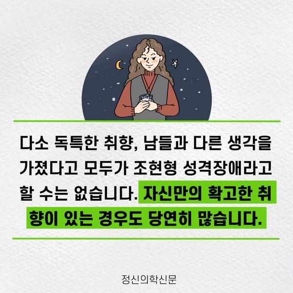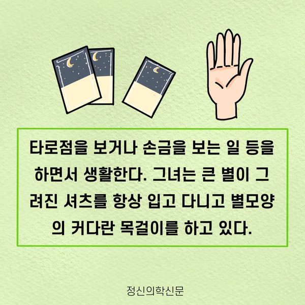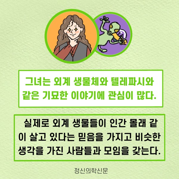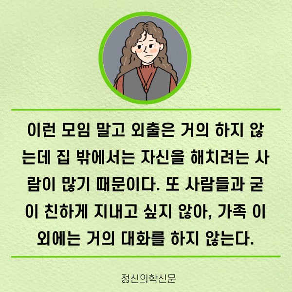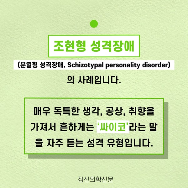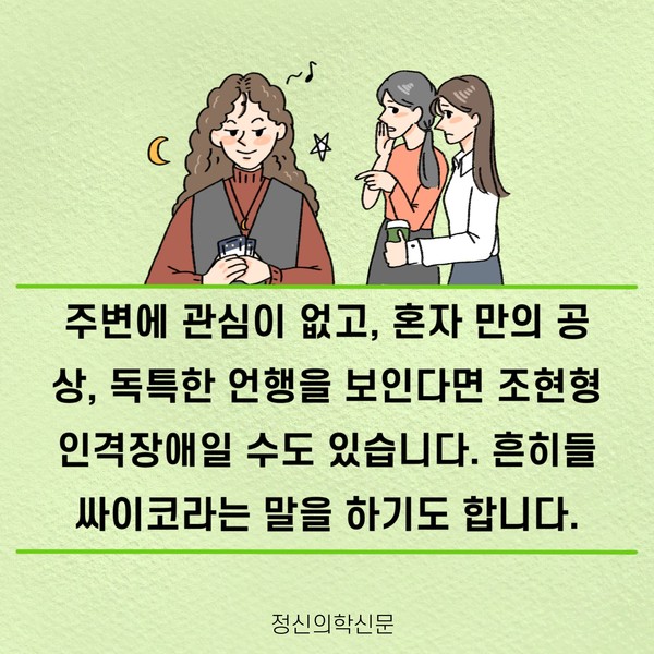 관련기사 미신에 대한 믿음이 강한 독특한 취향의 사이코 - 조현형 성격장애 키워드 #미신 #4차원 #조현병 임찬영 정신건강의학과 전문의 info.psynews@gmail.com 다른기사 보기 저작권자 © 정신의학신문 무단전재 및 재배포 금지 추천 뉴스 매 맞는 여성 증후군 - 사랑이라는 이름의 폭력이 남기는 상처 얼만큼 운동해야 우울증을 예방할까? 약만으로 부족할 때, 우울증에 효과적인 운동은 이것입니다 영웅의 숨겨진 아픔 - 소방관 트라우마 불안이 쉽게 사라지지 않는 뇌과학적 이유 [신간소개] 당신의 상처는 사적이지 않다 수면다원검사를 꼭 받아봐야 하는 사람 (Part 3) 우울증에 좋은 운동은 뭘까 댓글삭제 삭제한 댓글은 다시 복구할 수 없습니다. 그래도 삭제하시겠습니까? 비밀번호 닫기 기사 댓글 0 댓글 접기 댓글 내용입력 비회원 로그인 이름 비밀번호 댓글 내용입력 댓글쓰기 계정을 선택하시면 로그인·계정인증을 통해 댓글을 남기실 수 있습니다. 회원 로그인 비회원 글쓰기 이름 비밀번호 자동등록방지 로그인 옵션 창닫기 주요기사 대인기피증 사회불안장애 극복하기 [Doctor's Mail] 연속된 사업 실패, 재기를 위해 노력하지만 힘듭니다 아직은 괜찮습니다 6화 나는 언제나 완성되어가는 중이다 불안장애와 공황장애 어떻게 다른가요 수면의 질과 ADHD의 상호작용 약만으로 부족할 때, 우울증에 효과적인 운동은 이것입니다