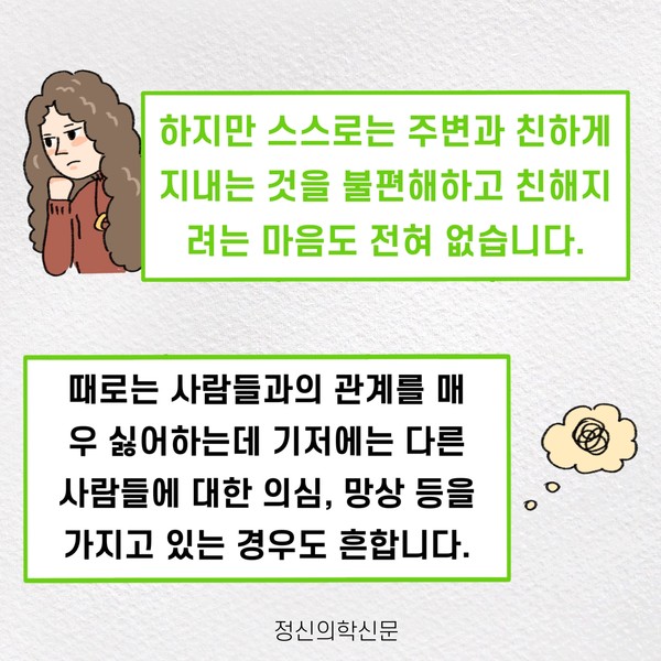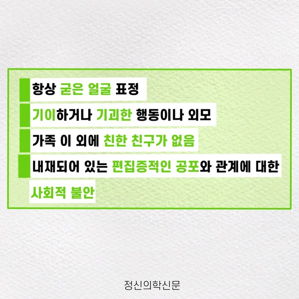 주요기사 대인기피증 사회불안장애 극복하기 [Doctor's Mail] 연속된 사업 실패, 재기를 위해 노력하지만 힘듭니다 아직은 괜찮습니다 6화 나는 언제나 완성되어가는 중이다 불안장애와 공황장애 어떻게 다른가요 수면의 질과 ADHD의 상호작용 약만으로 부족할 때, 우울증에 효과적인 운동은 이것입니다