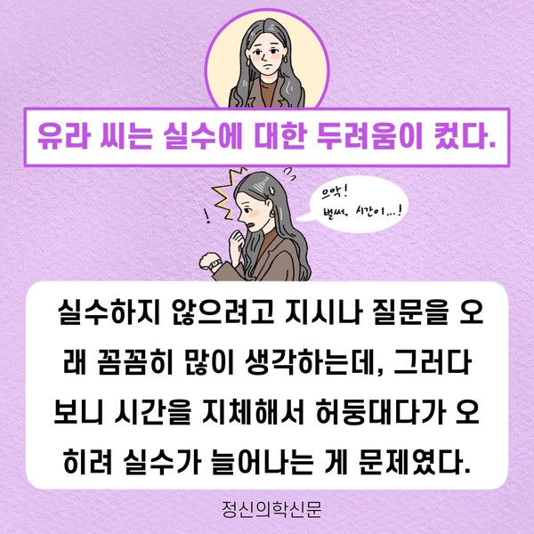 주요기사 대인기피증 사회불안장애 극복하기 [Doctor's Mail] 연속된 사업 실패, 재기를 위해 노력하지만 힘듭니다 아직은 괜찮습니다 6화 나는 언제나 완성되어가는 중이다 불안장애와 공황장애 어떻게 다른가요 수면의 질과 ADHD의 상호작용 약만으로 부족할 때, 우울증에 효과적인 운동은 이것입니다