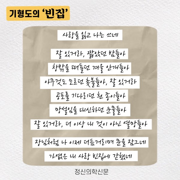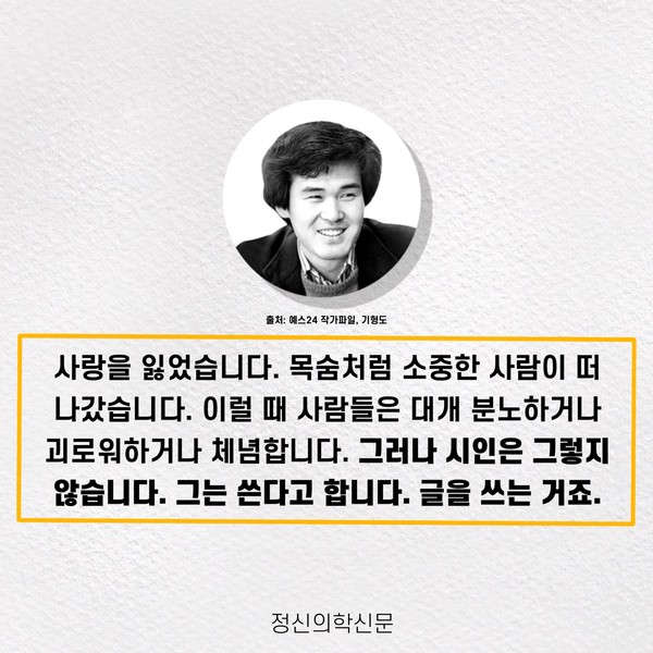 황인환 정신건강의학과 전문의 여의도힐 정신건강의학과 원장 황인환 정신건강의학과 전문의 여의도힐 정신건강의학과 원장 한양대학교 의과대학 학사, 석사 대한신경정신의학회 정회원 저서 <마음은 괜찮냐고 시가 물었다> 전문의 홈 가기 애독자 응원 한 마디 "세상에 자신의 글을 통해 작은 생각의 변화를 이끄는 선생님의 노력이 아름답다고 생각합니다. 좋은 글 감사합니다." 황인환 전문의의 대표칼럼 집이 주는 만족감, 홈 스윗 홈을 원한다면? 조직 성공을 위한 복권 티켓을 잡는 법 - 복권 티켓 가설 환경이 우리 마음에 미치는 영향, 루시퍼 이펙트 알고리즘이 만드는 신념- 필터 버블(Filter Bubble) 인정과 성장을 동시에 이끌어내는 피드백 샌드위치 (feedback sandwich) 인지적 재평가 - 감정 조절과 갈등 해결의 열쇠 관련기사 이별의 순간 - 망설임을 대신하던 눈물들 노래 가사 속 이별과 고통의 심리 키워드 #기형도 #빈집 #이별 #사별 황인환 정신건강의학과 전문의 info.psynews@gmail.com 다른기사 보기 저작권자 © 정신의학신문 무단전재 및 재배포 금지 추천 뉴스 매 맞는 여성 증후군 - 사랑이라는 이름의 폭력이 남기는 상처 얼만큼 운동해야 우울증을 예방할까? 약만으로 부족할 때, 우울증에 효과적인 운동은 이것입니다 영웅의 숨겨진 아픔 - 소방관 트라우마 불안이 쉽게 사라지지 않는 뇌과학적 이유 [신간소개] 당신의 상처는 사적이지 않다 수면다원검사를 꼭 받아봐야 하는 사람 (Part 3) 우울증에 좋은 운동은 뭘까 댓글삭제 삭제한 댓글은 다시 복구할 수 없습니다. 그래도 삭제하시겠습니까? 비밀번호 닫기 기사 댓글 0 댓글 접기 댓글 내용입력 비회원 로그인 이름 비밀번호 댓글 내용입력 댓글쓰기 계정을 선택하시면 로그인·계정인증을 통해 댓글을 남기실 수 있습니다. 회원 로그인 비회원 글쓰기 이름 비밀번호 자동등록방지 로그인 옵션 창닫기 주요기사 대인기피증 사회불안장애 극복하기 [Doctor's Mail] 연속된 사업 실패, 재기를 위해 노력하지만 힘듭니다 아직은 괜찮습니다 6화 나는 언제나 완성되어가는 중이다 불안장애와 공황장애 어떻게 다른가요 수면의 질과 ADHD의 상호작용 약만으로 부족할 때, 우울증에 효과적인 운동은 이것입니다