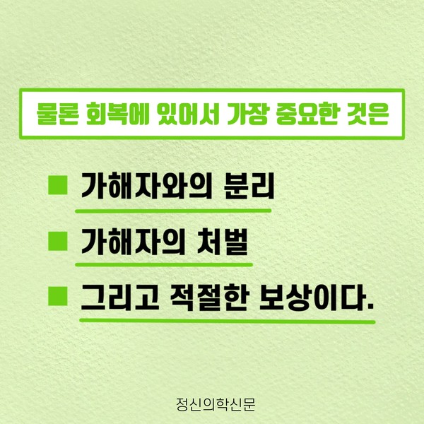 추천 뉴스 매 맞는 여성 증후군 - 사랑이라는 이름의 폭력이 남기는 상처 얼만큼 운동해야 우울증을 예방할까? 약만으로 부족할 때, 우울증에 효과적인 운동은 이것입니다 영웅의 숨겨진 아픔 - 소방관 트라우마 불안이 쉽게 사라지지 않는 뇌과학적 이유 [신간소개] 당신의 상처는 사적이지 않다 수면다원검사를 꼭 받아봐야 하는 사람 (Part 3)