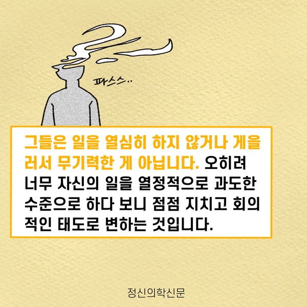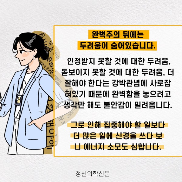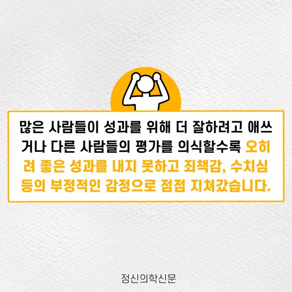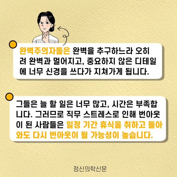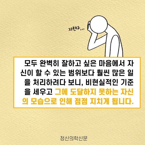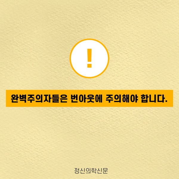 관련기사 번아웃의 그림자, 완벽주의 [오늘마음읽기]뭘 해도 딱히 행복하지 않은 당신에게 완벽주의 성향과 사회불안 키워드 #번아웃 #일중독 #완벽주의 윤동욱 정신건강의학과 전문의 mindyoondak@naver.com 다른기사 보기 저작권자 © 정신의학신문 무단전재 및 재배포 금지 추천 뉴스 매 맞는 여성 증후군 - 사랑이라는 이름의 폭력이 남기는 상처 얼만큼 운동해야 우울증을 예방할까? 영웅의 숨겨진 아픔 - 소방관 트라우마 약만으로 부족할 때, 우울증에 효과적인 운동은 이것입니다 불안이 쉽게 사라지지 않는 뇌과학적 이유 [신간소개] 당신의 상처는 사적이지 않다 수면다원검사를 꼭 받아봐야 하는 사람 (Part 3) 우울증에 좋은 운동은 뭘까 댓글삭제 삭제한 댓글은 다시 복구할 수 없습니다. 그래도 삭제하시겠습니까? 비밀번호 닫기 기사 댓글 0 댓글 접기 댓글 내용입력 비회원 로그인 이름 비밀번호 댓글 내용입력 댓글쓰기 계정을 선택하시면 로그인·계정인증을 통해 댓글을 남기실 수 있습니다. 회원 로그인 비회원 글쓰기 이름 비밀번호 자동등록방지 로그인 옵션 창닫기 주요기사 대인기피증 사회불안장애 극복하기 [Doctor's Mail] 연속된 사업 실패, 재기를 위해 노력하지만 힘듭니다 아직은 괜찮습니다 6화 나는 언제나 완성되어가는 중이다 불안장애와 공황장애 어떻게 다른가요 수면의 질과 ADHD의 상호작용 약만으로 부족할 때, 우울증에 효과적인 운동은 이것입니다