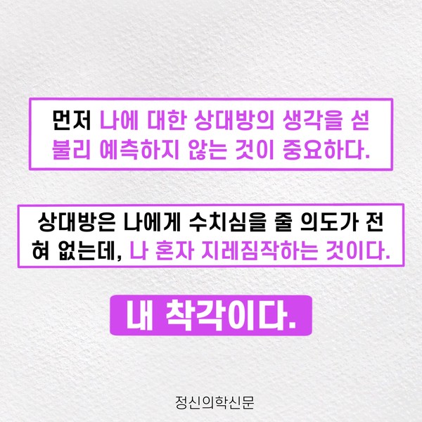 정신과 약을 복용하는 군인, 어떤 생각이 드시나요? [카드뉴스] 인생이 잘 안 풀리는 사람들의 무의식적인 말버릇 [카드뉴스] 젊은 꼰대 - 수직적 인간관계에 익숙한 사람들 [카드뉴스] 유독 걱정이 많은 사람이 기억하면 좋을 습관 퇴근 후 만사가 귀찮고 재미없다면?