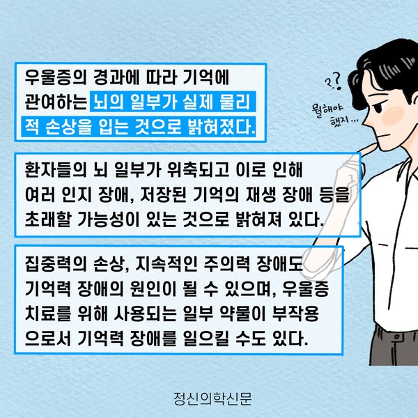 추천 뉴스 매 맞는 여성 증후군 - 사랑이라는 이름의 폭력이 남기는 상처 얼만큼 운동해야 우울증을 예방할까? 약만으로 부족할 때, 우울증에 효과적인 운동은 이것입니다 영웅의 숨겨진 아픔 - 소방관 트라우마 불안이 쉽게 사라지지 않는 뇌과학적 이유 [신간소개] 당신의 상처는 사적이지 않다 수면다원검사를 꼭 받아봐야 하는 사람 (Part 3)