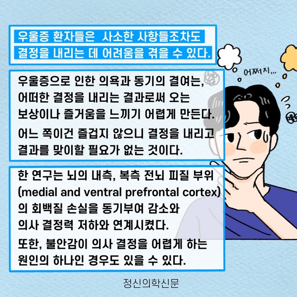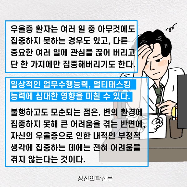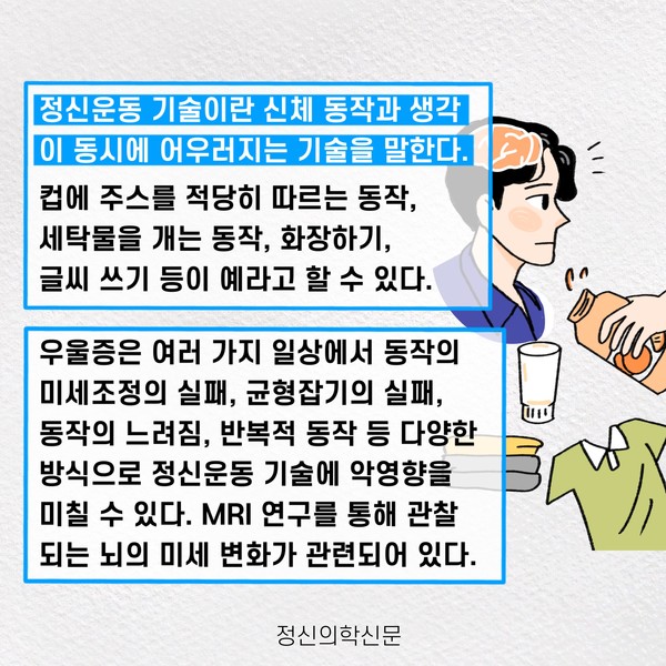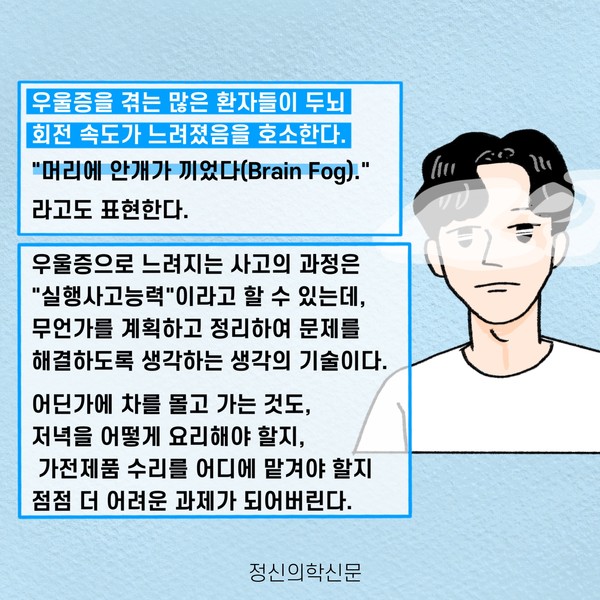 관련기사 우울하지 않은 우울증의 증상, '인지장애 증상’ 키워드 #우울증 #우울증증상 #인지기능장애 김경우 정신건강의학과 전문의 info.psynews@gmail.com 다른기사 보기 저작권자 © 정신의학신문 무단전재 및 재배포 금지 추천 뉴스 매 맞는 여성 증후군 - 사랑이라는 이름의 폭력이 남기는 상처 얼만큼 운동해야 우울증을 예방할까? 약만으로 부족할 때, 우울증에 효과적인 운동은 이것입니다 영웅의 숨겨진 아픔 - 소방관 트라우마 불안이 쉽게 사라지지 않는 뇌과학적 이유 [신간소개] 당신의 상처는 사적이지 않다 수면다원검사를 꼭 받아봐야 하는 사람 (Part 3) 우울증에 좋은 운동은 뭘까 댓글삭제 삭제한 댓글은 다시 복구할 수 없습니다. 그래도 삭제하시겠습니까? 비밀번호 닫기 기사 댓글 0 댓글 접기 댓글 내용입력 비회원 로그인 이름 비밀번호 댓글 내용입력 댓글쓰기 계정을 선택하시면 로그인·계정인증을 통해 댓글을 남기실 수 있습니다. 회원 로그인 비회원 글쓰기 이름 비밀번호 자동등록방지 로그인 옵션 창닫기 주요기사 대인기피증 사회불안장애 극복하기 [Doctor's Mail] 연속된 사업 실패, 재기를 위해 노력하지만 힘듭니다 아직은 괜찮습니다 6화 나는 언제나 완성되어가는 중이다 불안장애와 공황장애 어떻게 다른가요 수면의 질과 ADHD의 상호작용 약만으로 부족할 때, 우울증에 효과적인 운동은 이것입니다
