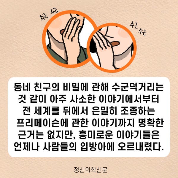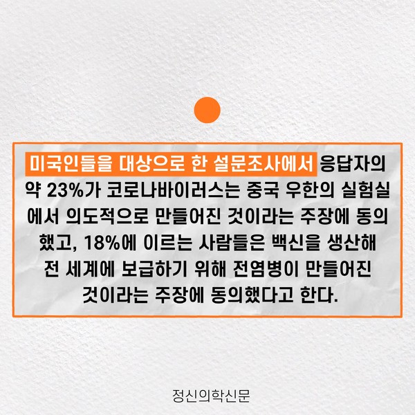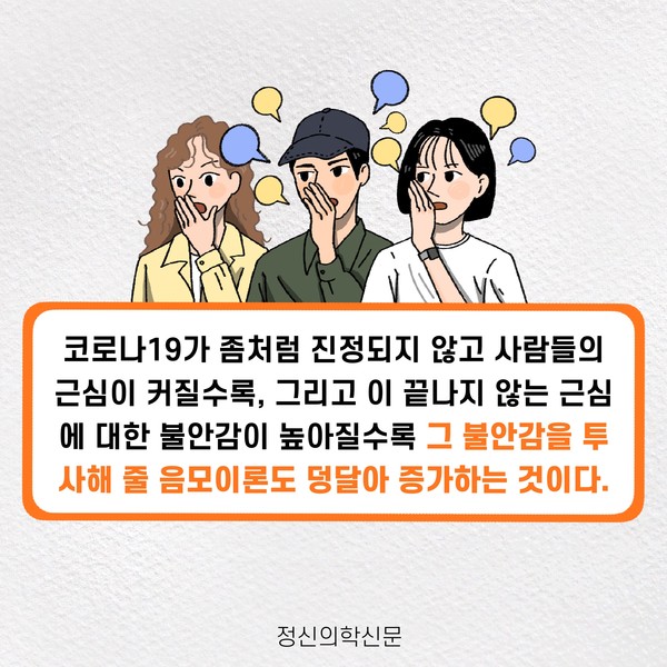 관련기사 코로나19로 더욱 불붙는 음모이론들 키워드 #코로나19 #코로나 #음모론 #헛소문 유승준 기자 info.psynews@gmail.com 다른기사 보기 저작권자 © 정신의학신문 무단전재 및 재배포 금지 추천 뉴스 매 맞는 여성 증후군 - 사랑이라는 이름의 폭력이 남기는 상처 얼만큼 운동해야 우울증을 예방할까? 영웅의 숨겨진 아픔 - 소방관 트라우마 약만으로 부족할 때, 우울증에 효과적인 운동은 이것입니다 불안이 쉽게 사라지지 않는 뇌과학적 이유 [신간소개] 당신의 상처는 사적이지 않다 수면다원검사를 꼭 받아봐야 하는 사람 (Part 3) 우울증에 좋은 운동은 뭘까 댓글삭제 삭제한 댓글은 다시 복구할 수 없습니다. 그래도 삭제하시겠습니까? 비밀번호 닫기 기사 댓글 0 댓글 접기 댓글 내용입력 비회원 로그인 이름 비밀번호 댓글 내용입력 댓글쓰기 계정을 선택하시면 로그인·계정인증을 통해 댓글을 남기실 수 있습니다. 회원 로그인 비회원 글쓰기 이름 비밀번호 자동등록방지 로그인 옵션 창닫기 주요기사 대인기피증 사회불안장애 극복하기 [Doctor's Mail] 연속된 사업 실패, 재기를 위해 노력하지만 힘듭니다 아직은 괜찮습니다 6화 나는 언제나 완성되어가는 중이다 불안장애와 공황장애 어떻게 다른가요 수면의 질과 ADHD의 상호작용 약만으로 부족할 때, 우울증에 효과적인 운동은 이것입니다