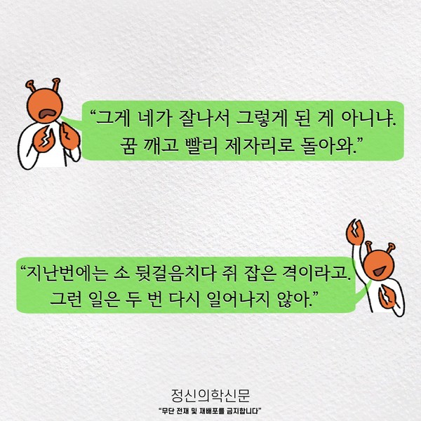 추천 뉴스 매 맞는 여성 증후군 - 사랑이라는 이름의 폭력이 남기는 상처 얼만큼 운동해야 우울증을 예방할까? 약만으로 부족할 때, 우울증에 효과적인 운동은 이것입니다 영웅의 숨겨진 아픔 - 소방관 트라우마 불안이 쉽게 사라지지 않는 뇌과학적 이유 [신간소개] 당신의 상처는 사적이지 않다 수면다원검사를 꼭 받아봐야 하는 사람 (Part 3)