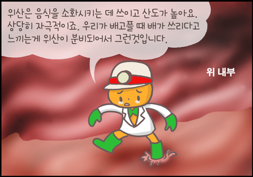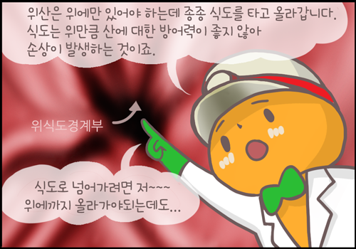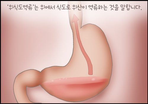 위는 당연히 위에만 있어야 합니다. 그런데 위산이 위의 천장에 이는 위식도경계부를 통해 식도로 올라갈 수 있습니다. 식도는 위만큼 산에 대한 방어능력이 좋지 않아서 손상이 발생할 수 있습니다.