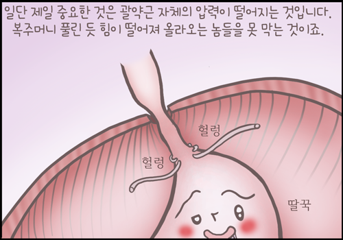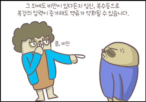 제일 중요한 것은 괄약근 자체의 압력이 떨어지는 것입니다. 복주머니 풀린 듯이 힘이 떨어져서 올라오는 것을 못 막는 것이죠.