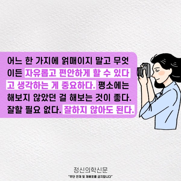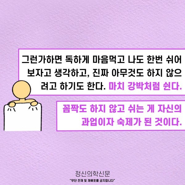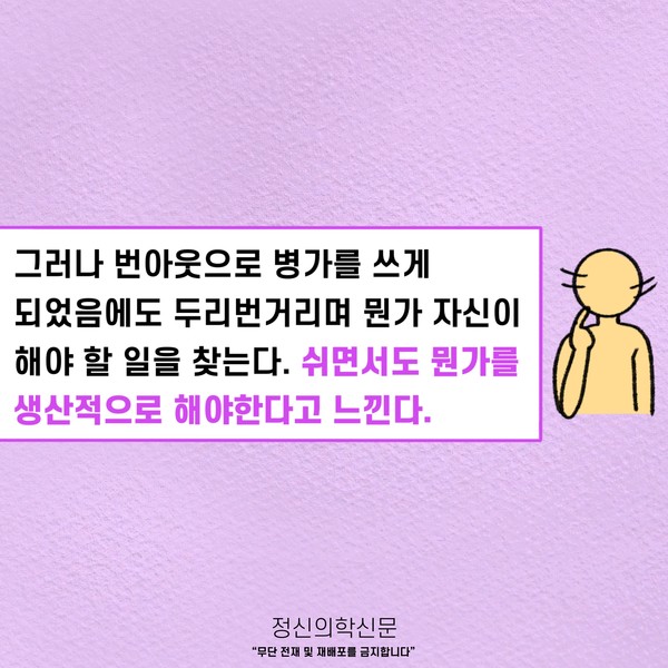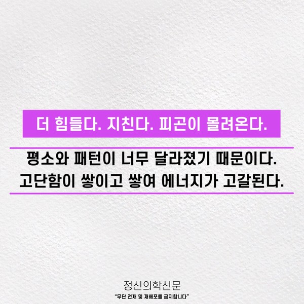 정신과 약을 복용하는 군인, 어떤 생각이 드시나요? [카드뉴스] 인생이 잘 안 풀리는 사람들의 무의식적인 말버릇 [카드뉴스] 젊은 꼰대 - 수직적 인간관계에 익숙한 사람들 [카드뉴스] 유독 걱정이 많은 사람이 기억하면 좋을 습관 퇴근 후 만사가 귀찮고 재미없다면?