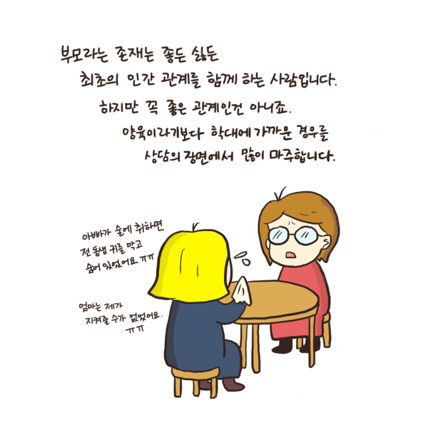처음, 작가의 말 / 상담 받기 전에 그 사람이 어떤 자격을 가졌는지 잘 확인하세요. 팔호광장 Instagram@palhosquare 다른기사 보기 저작권자 © 정신의학신문 무단전재 및 재배포 금지 추천 뉴스 매 맞는 여성 증후군 - 사랑이라는 이름의 폭력이 남기는 상처 얼만큼 운동해야 우울증을 예방할까? 약만으로 부족할 때, 우울증에 효과적인 운동은 이것입니다 영웅의 숨겨진 아픔 - 소방관 트라우마 불안이 쉽게 사라지지 않는 뇌과학적 이유 [신간소개] 당신의 상처는 사적이지 않다 수면다원검사를 꼭 받아봐야 하는 사람 (Part 3) 우울증에 좋은 운동은 뭘까 댓글삭제 삭제한 댓글은 다시 복구할 수 없습니다. 그래도 삭제하시겠습니까? 비밀번호 닫기 기사 댓글 0 댓글 접기 댓글 내용입력 비회원 로그인 이름 비밀번호 댓글 내용입력 댓글쓰기 계정을 선택하시면 로그인·계정인증을 통해 댓글을 남기실 수 있습니다. 회원 로그인 비회원 글쓰기 이름 비밀번호 자동등록방지 로그인 옵션 창닫기 주요기사 대인기피증 사회불안장애 극복하기 [Doctor's Mail] 연속된 사업 실패, 재기를 위해 노력하지만 힘듭니다 아직은 괜찮습니다 6화 나는 언제나 완성되어가는 중이다 불안장애와 공황장애 어떻게 다른가요 수면의 질과 ADHD의 상호작용 약만으로 부족할 때, 우울증에 효과적인 운동은 이것입니다