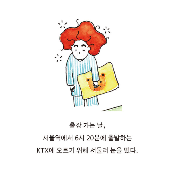 돌아보면 출장을 가던 그날도 그랬다. 오랫동안 준비한 교육이지만 전날까지도 변경되는 세부 사항들이 있어서 한시도 마음을 놓을 수 없었다. 회사에서 인정받지 못하는 지금이야말로 실수 없이 잘 해내야 한다는 생각에 예민해질 대로 예민한 상태였다. 충분히 완벽했지만 더 완벽해야 한다고 스스로를 다그쳤다. 그렇게 이른 새벽부터 한 손에는 아메리카노를, 다른 한 손에는 엑셀로 만든 체크리스트를 들고 부랴부랴 KTX에 오른 그날은 몸도 마음도 참으로 분주했다.