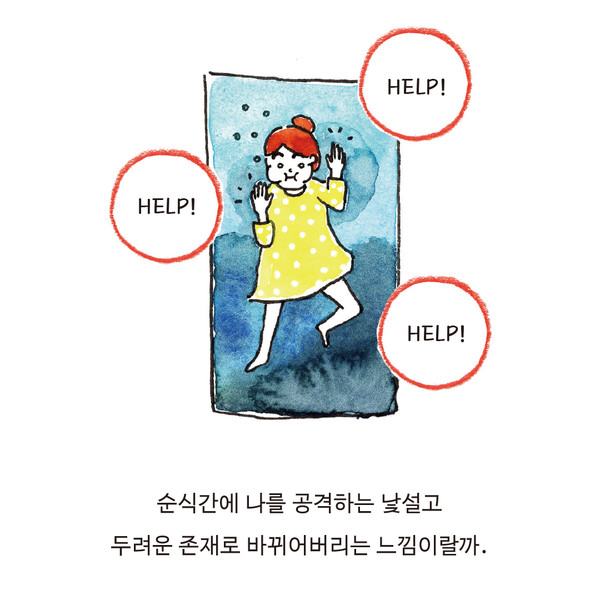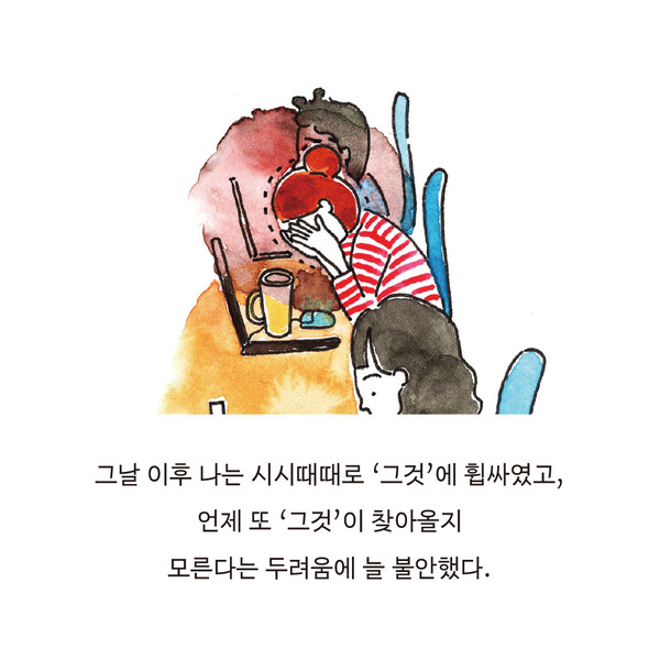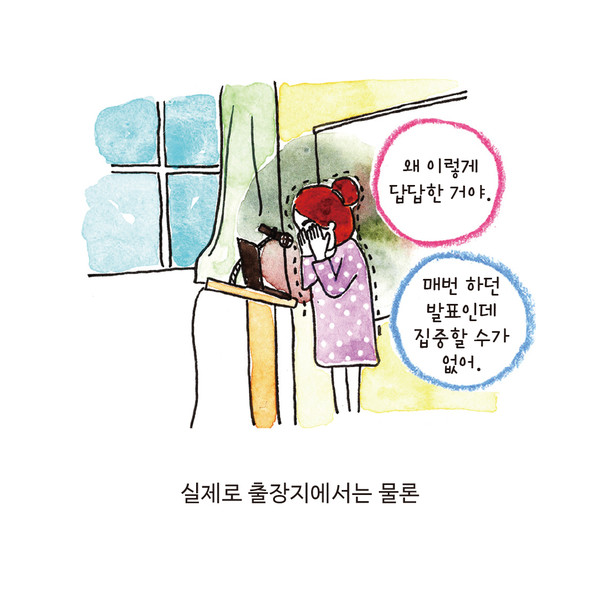 한 번은 회사에서 일을 하던 중 증상이 시작된 적이 있었다. ‘철렁’ 하고 심장이 내려앉는 느낌과 함께 온몸이 땀으로 젖으며 불안해지기 시작한 것이다. 이런 나의 상태를 누구에게 들킬까 봐 초조해진 나는 결국 버티지 못하고 사무실을 뛰쳐나와 증상이 사라질 때까지 들어가지 못했다. 당시엔 그저 빨리 도망치는 것 외에 할 수 있는 일이 없었다.