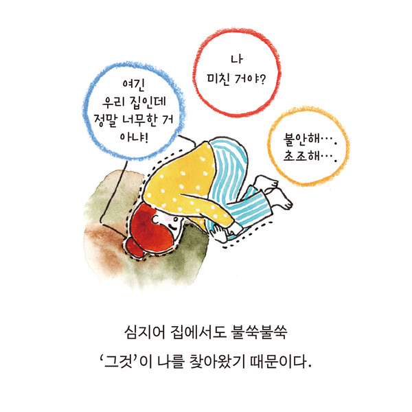 증상이 모두 사라진 후에도 불안하기는 마찬가지였다. 언제 또 그런 증상이 나타날까 싶어 초조하고 두려운 상태가 지속됐기 때문이다. 나중에야 알았지만 이것은 공황장애의 가장 큰 특징인 ‘예기불안’이라는 증상이었다. 나는 급격히 나타났다가 사라지는 공황 증상도 힘들었지만 이후 계속되는 예기불안이 더 괴롭고 힘들었다. 나는 불안하지 않아도 불안했다.