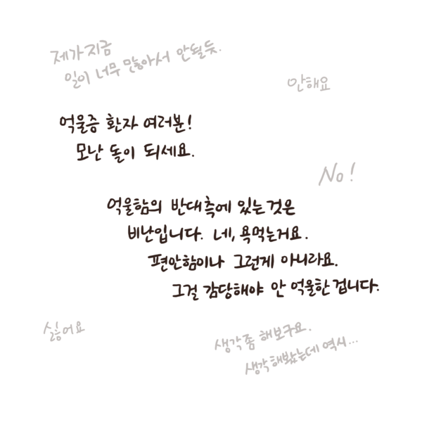 억울하세요? 작가의 말 / 그런 진단이 정말 있나요? 아니요. 웃기려고 만든 진단명입니다. 팔호광장 Instagram@palhosquare 다른기사 보기 저작권자 © 정신의학신문 무단전재 및 재배포 금지 추천 뉴스 매 맞는 여성 증후군 - 사랑이라는 이름의 폭력이 남기는 상처 얼만큼 운동해야 우울증을 예방할까? 약만으로 부족할 때, 우울증에 효과적인 운동은 이것입니다 영웅의 숨겨진 아픔 - 소방관 트라우마 불안이 쉽게 사라지지 않는 뇌과학적 이유 [신간소개] 당신의 상처는 사적이지 않다 수면다원검사를 꼭 받아봐야 하는 사람 (Part 3) 우울증에 좋은 운동은 뭘까 댓글삭제 삭제한 댓글은 다시 복구할 수 없습니다. 그래도 삭제하시겠습니까? 비밀번호 닫기 기사 댓글 0 댓글 접기 댓글 내용입력 비회원 로그인 이름 비밀번호 댓글 내용입력 댓글쓰기 계정을 선택하시면 로그인·계정인증을 통해 댓글을 남기실 수 있습니다. 회원 로그인 비회원 글쓰기 이름 비밀번호 자동등록방지 로그인 옵션 창닫기 주요기사 대인기피증 사회불안장애 극복하기 [Doctor's Mail] 연속된 사업 실패, 재기를 위해 노력하지만 힘듭니다 아직은 괜찮습니다 6화 나는 언제나 완성되어가는 중이다 불안장애와 공황장애 어떻게 다른가요 수면의 질과 ADHD의 상호작용 약만으로 부족할 때, 우울증에 효과적인 운동은 이것입니다