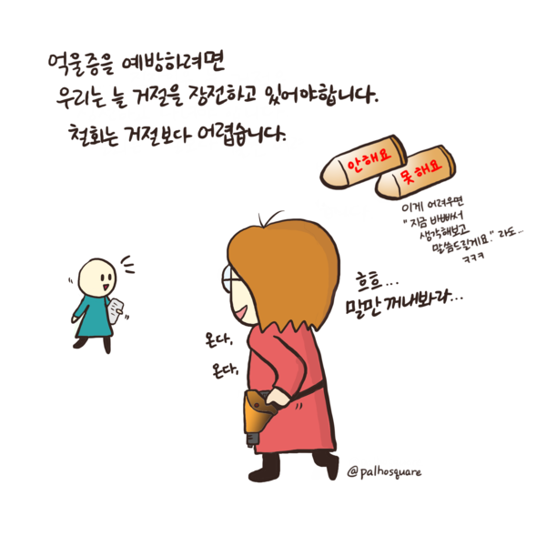 말 작가의 말 / 망설여지면 결정을 미루기라도 하세요. 억울증을 예방합시다. 팔호광장 Instagram@palhosquare 다른기사 보기 저작권자 © 정신의학신문 무단전재 및 재배포 금지 추천 뉴스 매 맞는 여성 증후군 - 사랑이라는 이름의 폭력이 남기는 상처 얼만큼 운동해야 우울증을 예방할까? 약만으로 부족할 때, 우울증에 효과적인 운동은 이것입니다 영웅의 숨겨진 아픔 - 소방관 트라우마 불안이 쉽게 사라지지 않는 뇌과학적 이유 [신간소개] 당신의 상처는 사적이지 않다 수면다원검사를 꼭 받아봐야 하는 사람 (Part 3) 우울증에 좋은 운동은 뭘까 댓글삭제 삭제한 댓글은 다시 복구할 수 없습니다. 그래도 삭제하시겠습니까? 비밀번호 닫기 기사 댓글 0 댓글 접기 댓글 내용입력 비회원 로그인 이름 비밀번호 댓글 내용입력 댓글쓰기 계정을 선택하시면 로그인·계정인증을 통해 댓글을 남기실 수 있습니다. 회원 로그인 비회원 글쓰기 이름 비밀번호 자동등록방지 로그인 옵션 창닫기 주요기사 대인기피증 사회불안장애 극복하기 [Doctor's Mail] 연속된 사업 실패, 재기를 위해 노력하지만 힘듭니다 아직은 괜찮습니다 6화 나는 언제나 완성되어가는 중이다 불안장애와 공황장애 어떻게 다른가요 수면의 질과 ADHD의 상호작용 약만으로 부족할 때, 우울증에 효과적인 운동은 이것입니다