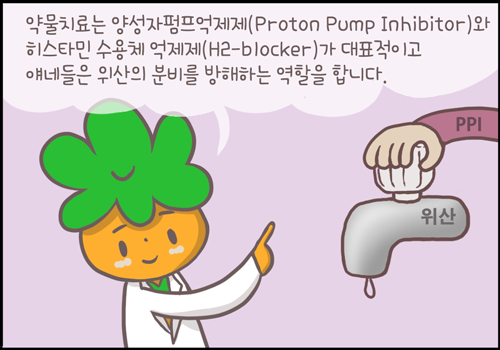 약물치료는 양성자 펌프 억제제 (Proton pump inhibitor)와 히스타민 수용체 억제제 (H2 blocker)가 대표적입니다. 이 약들은 위산의 분비를 억제하는 역할을 합니다. 이 약을 꾸준히 먹는 것으로도 치료 성공률은 높은 편입니다. 하지만 약물치료와 함께 지켜야 할 주의사항들이 있습니다.