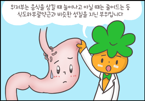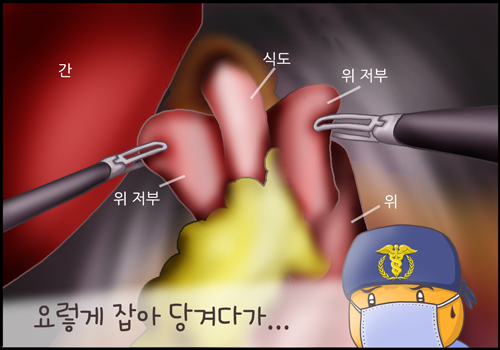 위저부는 음식을 삼킬 때는 늘어나고 아닐 때는 줄어드는 등 식도하부괄약근과 비슷한 성질을 지닌 부위입니다. 식도역류증의 수술에는 위저부를 활용하게 됩니다.