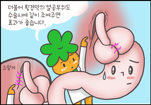 더불어 횡경막의 열공부위도 수술 시에 같이 조여주는 효과가 좋습니다.