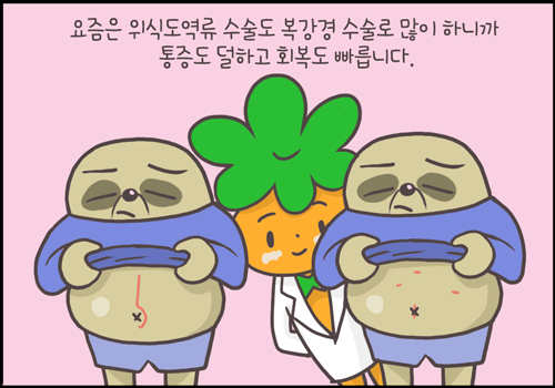 수술이라는 것이 두렵긴 하지만 요즘은 복강경 수술을 많이 하므로 통증도 덜하고 회복도 빠를 수 있습니다.
