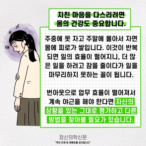 추천 뉴스 매 맞는 여성 증후군 - 사랑이라는 이름의 폭력이 남기는 상처 얼만큼 운동해야 우울증을 예방할까? 약만으로 부족할 때, 우울증에 효과적인 운동은 이것입니다 영웅의 숨겨진 아픔 - 소방관 트라우마 불안이 쉽게 사라지지 않는 뇌과학적 이유 [신간소개] 당신의 상처는 사적이지 않다 수면다원검사를 꼭 받아봐야 하는 사람 (Part 3)