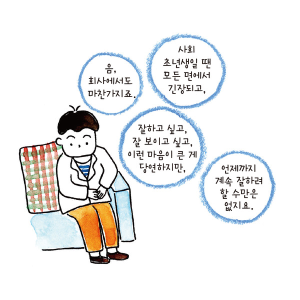 이런 생각은 성인이 돼서도 변하지 않았다. 노력해도 안 되는 건 과감히 포기하되 할 수 있는 건 완벽하게 해야만 인생의 평균치를 올릴 수 있다고 생각했던 걸까? 19점인 수학을 만회하기 위해 다른 과목에서 100점을 받으려 애썼던 그 마음처럼, 나는 자주 나의 분야에서만큼은 100점이 되어야 한다고 다짐하곤 했다. 그렇게 해야 나의 취약한 부분을 감출 수 있고 잘 살 수 있다고 믿었기 때문이다.