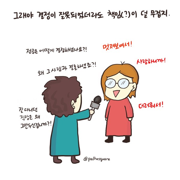 뭣이 작가의 말 / 많이 고민되신다면 별로 중요한 문제가 아닐 수도.. 키워드 #정신건강의학과 #정신과 #심리학 #심리 #고민 #결정 팔호광장 Instagram@palhosquare 다른기사 보기 저작권자 © 정신의학신문 무단전재 및 재배포 금지 추천 뉴스 매 맞는 여성 증후군 - 사랑이라는 이름의 폭력이 남기는 상처 얼만큼 운동해야 우울증을 예방할까? 약만으로 부족할 때, 우울증에 효과적인 운동은 이것입니다 영웅의 숨겨진 아픔 - 소방관 트라우마 불안이 쉽게 사라지지 않는 뇌과학적 이유 [신간소개] 당신의 상처는 사적이지 않다 수면다원검사를 꼭 받아봐야 하는 사람 (Part 3) 우울증에 좋은 운동은 뭘까 댓글삭제 삭제한 댓글은 다시 복구할 수 없습니다. 그래도 삭제하시겠습니까? 비밀번호 닫기 기사 댓글 0 댓글 접기 댓글 내용입력 비회원 로그인 이름 비밀번호 댓글 내용입력 댓글쓰기 계정을 선택하시면 로그인·계정인증을 통해 댓글을 남기실 수 있습니다. 회원 로그인 비회원 글쓰기 이름 비밀번호 자동등록방지 로그인 옵션 창닫기 주요기사 대인기피증 사회불안장애 극복하기 [Doctor's Mail] 연속된 사업 실패, 재기를 위해 노력하지만 힘듭니다 아직은 괜찮습니다 6화 나는 언제나 완성되어가는 중이다 불안장애와 공황장애 어떻게 다른가요 수면의 질과 ADHD의 상호작용 약만으로 부족할 때, 우울증에 효과적인 운동은 이것입니다
