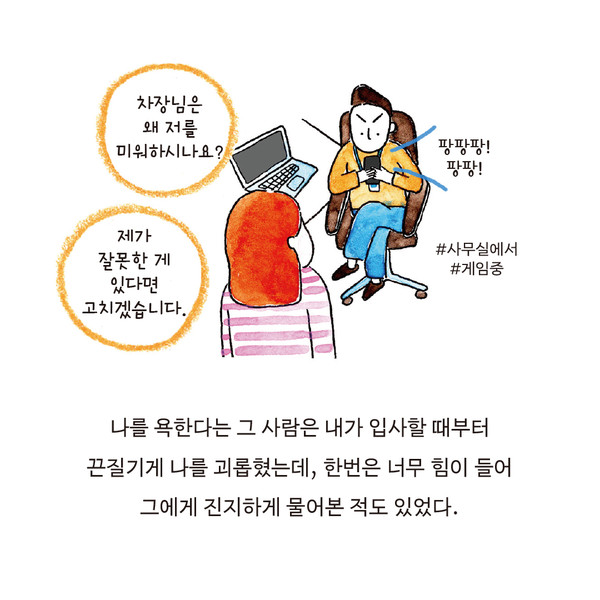 그런데 연예인만 악플을 경험하는 건 아니다. 일상에서 맺는 수많은 관계 속에도 악플은 존재한다. 특히 직급에 따른 계층과 직책에 따른 위계가 존재하는 회사야말로 이러한 악플이 꽃 피울 수 있는 최적의 환경이라고 생각한다.