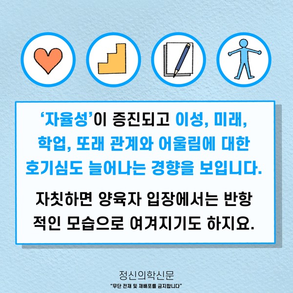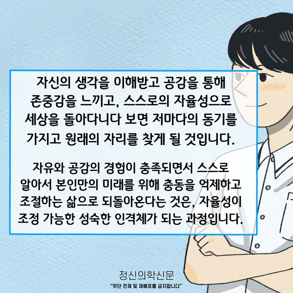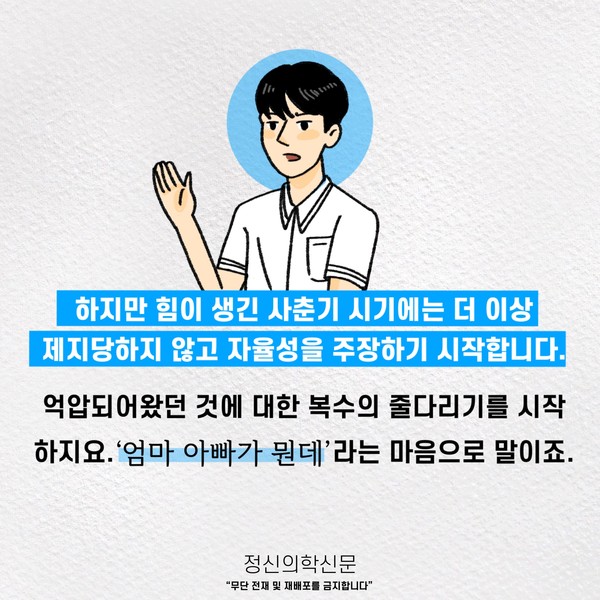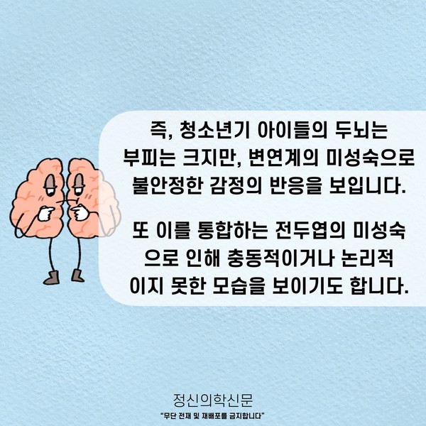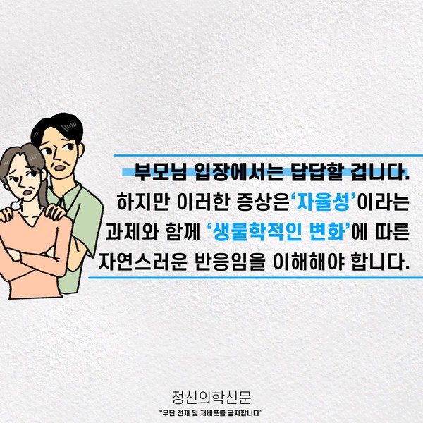 관련기사 ‘이 녀석을 어찌할꼬’ 청소년 자녀, 심리 - 정서의 생물학적 관점에서의 이해 10대 청소년들의 명품 소비, 무엇이 문제인가요? 키워드 #사춘기 #청소년기 허량 정신건강의학과 전문의 info.psynews@gmail.com 다른기사 보기 저작권자 © 정신의학신문 무단전재 및 재배포 금지 추천 뉴스 매 맞는 여성 증후군 - 사랑이라는 이름의 폭력이 남기는 상처 얼만큼 운동해야 우울증을 예방할까? 약만으로 부족할 때, 우울증에 효과적인 운동은 이것입니다 영웅의 숨겨진 아픔 - 소방관 트라우마 불안이 쉽게 사라지지 않는 뇌과학적 이유 [신간소개] 당신의 상처는 사적이지 않다 수면다원검사를 꼭 받아봐야 하는 사람 (Part 3) 우울증에 좋은 운동은 뭘까 댓글삭제 삭제한 댓글은 다시 복구할 수 없습니다. 그래도 삭제하시겠습니까? 비밀번호 닫기 기사 댓글 0 댓글 접기 댓글 내용입력 비회원 로그인 이름 비밀번호 댓글 내용입력 댓글쓰기 계정을 선택하시면 로그인·계정인증을 통해 댓글을 남기실 수 있습니다. 회원 로그인 비회원 글쓰기 이름 비밀번호 자동등록방지 로그인 옵션 창닫기 주요기사 대인기피증 사회불안장애 극복하기 [Doctor's Mail] 연속된 사업 실패, 재기를 위해 노력하지만 힘듭니다 아직은 괜찮습니다 6화 나는 언제나 완성되어가는 중이다 불안장애와 공황장애 어떻게 다른가요 수면의 질과 ADHD의 상호작용 약만으로 부족할 때, 우울증에 효과적인 운동은 이것입니다