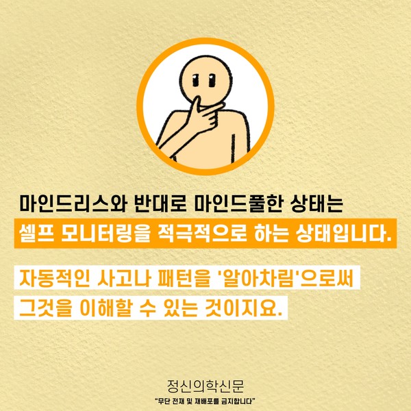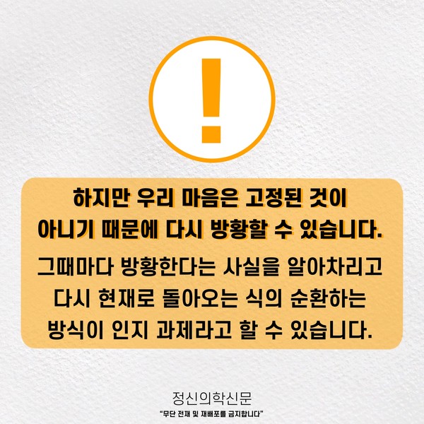 관련기사 폭포수처럼 쏟아지는 ‘감정’에서 한 발짝만 뒤로 물러서 볼까요? 키워드 #마인드풀니스 #감정조절 #거리두기 박천일 정신건강의학과 전문의 info.psynews@gmail.com 다른기사 보기 저작권자 © 정신의학신문 무단전재 및 재배포 금지 추천 뉴스 매 맞는 여성 증후군 - 사랑이라는 이름의 폭력이 남기는 상처 얼만큼 운동해야 우울증을 예방할까? 약만으로 부족할 때, 우울증에 효과적인 운동은 이것입니다 영웅의 숨겨진 아픔 - 소방관 트라우마 불안이 쉽게 사라지지 않는 뇌과학적 이유 [신간소개] 당신의 상처는 사적이지 않다 수면다원검사를 꼭 받아봐야 하는 사람 (Part 3) 우울증에 좋은 운동은 뭘까 댓글삭제 삭제한 댓글은 다시 복구할 수 없습니다. 그래도 삭제하시겠습니까? 비밀번호 닫기 기사 댓글 0 댓글 접기 댓글 내용입력 비회원 로그인 이름 비밀번호 댓글 내용입력 댓글쓰기 계정을 선택하시면 로그인·계정인증을 통해 댓글을 남기실 수 있습니다. 회원 로그인 비회원 글쓰기 이름 비밀번호 자동등록방지 로그인 옵션 창닫기 주요기사 대인기피증 사회불안장애 극복하기 [Doctor's Mail] 연속된 사업 실패, 재기를 위해 노력하지만 힘듭니다 아직은 괜찮습니다 6화 나는 언제나 완성되어가는 중이다 불안장애와 공황장애 어떻게 다른가요 수면의 질과 ADHD의 상호작용 약만으로 부족할 때, 우울증에 효과적인 운동은 이것입니다