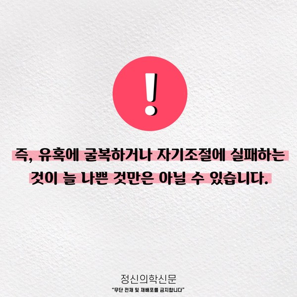관련기사 가끔은 마쉬멜로우의 유혹에 넘어가도 괜찮습니다 키워드 #유혹 #욕구 #자기조절 정신의학신문 info@psynews.co.kr 다른기사 보기 저작권자 © 정신의학신문 무단전재 및 재배포 금지 추천 뉴스 매 맞는 여성 증후군 - 사랑이라는 이름의 폭력이 남기는 상처 얼만큼 운동해야 우울증을 예방할까? 약만으로 부족할 때, 우울증에 효과적인 운동은 이것입니다 영웅의 숨겨진 아픔 - 소방관 트라우마 불안이 쉽게 사라지지 않는 뇌과학적 이유 [신간소개] 당신의 상처는 사적이지 않다 수면다원검사를 꼭 받아봐야 하는 사람 (Part 3) 우울증에 좋은 운동은 뭘까 댓글삭제 삭제한 댓글은 다시 복구할 수 없습니다. 그래도 삭제하시겠습니까? 비밀번호 닫기 기사 댓글 0 댓글 접기 댓글 내용입력 비회원 로그인 이름 비밀번호 댓글 내용입력 댓글쓰기 계정을 선택하시면 로그인·계정인증을 통해 댓글을 남기실 수 있습니다. 회원 로그인 비회원 글쓰기 이름 비밀번호 자동등록방지 로그인 옵션 창닫기 주요기사 대인기피증 사회불안장애 극복하기 [Doctor's Mail] 연속된 사업 실패, 재기를 위해 노력하지만 힘듭니다 아직은 괜찮습니다 6화 나는 언제나 완성되어가는 중이다 불안장애와 공황장애 어떻게 다른가요 수면의 질과 ADHD의 상호작용 약만으로 부족할 때, 우울증에 효과적인 운동은 이것입니다