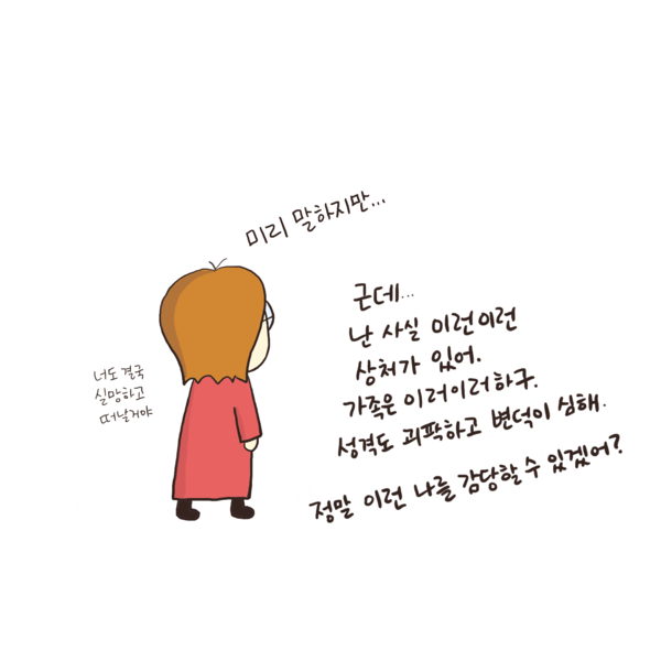 정말 괜찮겠어? 작가의 말 / 미리 이야기 안하면 너가 속은 기분이 들까봐. 키워드 #정신건강의학과 #정신과 #심리학 #심리 #인간관계 팔호광장 Instagram@palhosquare 다른기사 보기 저작권자 © 정신의학신문 무단전재 및 재배포 금지 추천 뉴스 매 맞는 여성 증후군 - 사랑이라는 이름의 폭력이 남기는 상처 얼만큼 운동해야 우울증을 예방할까? 영웅의 숨겨진 아픔 - 소방관 트라우마 약만으로 부족할 때, 우울증에 효과적인 운동은 이것입니다 불안이 쉽게 사라지지 않는 뇌과학적 이유 [신간소개] 당신의 상처는 사적이지 않다 수면다원검사를 꼭 받아봐야 하는 사람 (Part 3) 우울증에 좋은 운동은 뭘까 댓글삭제 삭제한 댓글은 다시 복구할 수 없습니다. 그래도 삭제하시겠습니까? 비밀번호 닫기 기사 댓글 0 댓글 접기 댓글 내용입력 비회원 로그인 이름 비밀번호 댓글 내용입력 댓글쓰기 계정을 선택하시면 로그인·계정인증을 통해 댓글을 남기실 수 있습니다. 회원 로그인 비회원 글쓰기 이름 비밀번호 자동등록방지 로그인 옵션 창닫기 주요기사 대인기피증 사회불안장애 극복하기 [Doctor's Mail] 연속된 사업 실패, 재기를 위해 노력하지만 힘듭니다 아직은 괜찮습니다 6화 나는 언제나 완성되어가는 중이다 불안장애와 공황장애 어떻게 다른가요 수면의 질과 ADHD의 상호작용 약만으로 부족할 때, 우울증에 효과적인 운동은 이것입니다