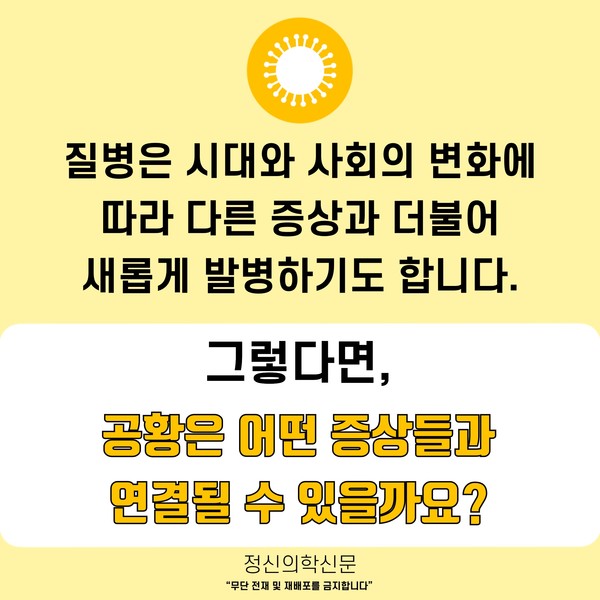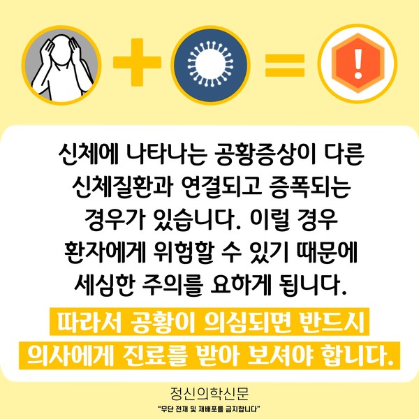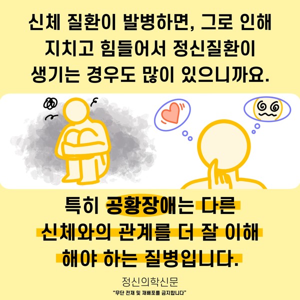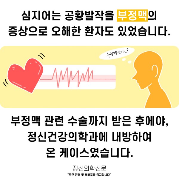 관련기사 공황발작과 신체 질환과의 연관성 키워드 #공황장애 #공황증상 이상혁 정신건강의학과 전문의 info.psynews@gmail.com 다른기사 보기 저작권자 © 정신의학신문 무단전재 및 재배포 금지 추천 뉴스 매 맞는 여성 증후군 - 사랑이라는 이름의 폭력이 남기는 상처 얼만큼 운동해야 우울증을 예방할까? 약만으로 부족할 때, 우울증에 효과적인 운동은 이것입니다 영웅의 숨겨진 아픔 - 소방관 트라우마 불안이 쉽게 사라지지 않는 뇌과학적 이유 [신간소개] 당신의 상처는 사적이지 않다 수면다원검사를 꼭 받아봐야 하는 사람 (Part 3) 우울증에 좋은 운동은 뭘까 댓글삭제 삭제한 댓글은 다시 복구할 수 없습니다. 그래도 삭제하시겠습니까? 비밀번호 닫기 기사 댓글 0 댓글 접기 댓글 내용입력 비회원 로그인 이름 비밀번호 댓글 내용입력 댓글쓰기 계정을 선택하시면 로그인·계정인증을 통해 댓글을 남기실 수 있습니다. 회원 로그인 비회원 글쓰기 이름 비밀번호 자동등록방지 로그인 옵션 창닫기 주요기사 대인기피증 사회불안장애 극복하기 [Doctor's Mail] 연속된 사업 실패, 재기를 위해 노력하지만 힘듭니다 아직은 괜찮습니다 6화 나는 언제나 완성되어가는 중이다 불안장애와 공황장애 어떻게 다른가요 수면의 질과 ADHD의 상호작용 약만으로 부족할 때, 우울증에 효과적인 운동은 이것입니다