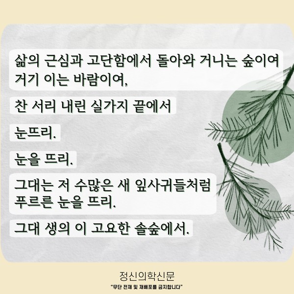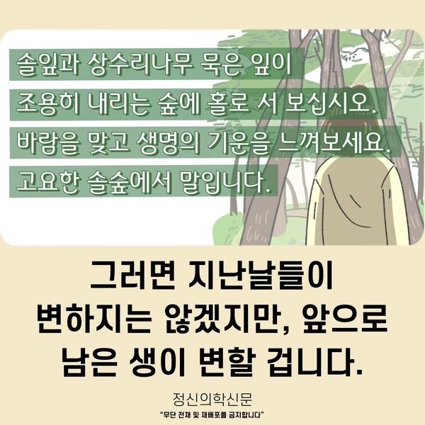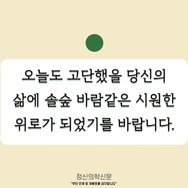 추천 뉴스 매 맞는 여성 증후군 - 사랑이라는 이름의 폭력이 남기는 상처 얼만큼 운동해야 우울증을 예방할까? 약만으로 부족할 때, 우울증에 효과적인 운동은 이것입니다 영웅의 숨겨진 아픔 - 소방관 트라우마 불안이 쉽게 사라지지 않는 뇌과학적 이유 [신간소개] 당신의 상처는 사적이지 않다 수면다원검사를 꼭 받아봐야 하는 사람 (Part 3)