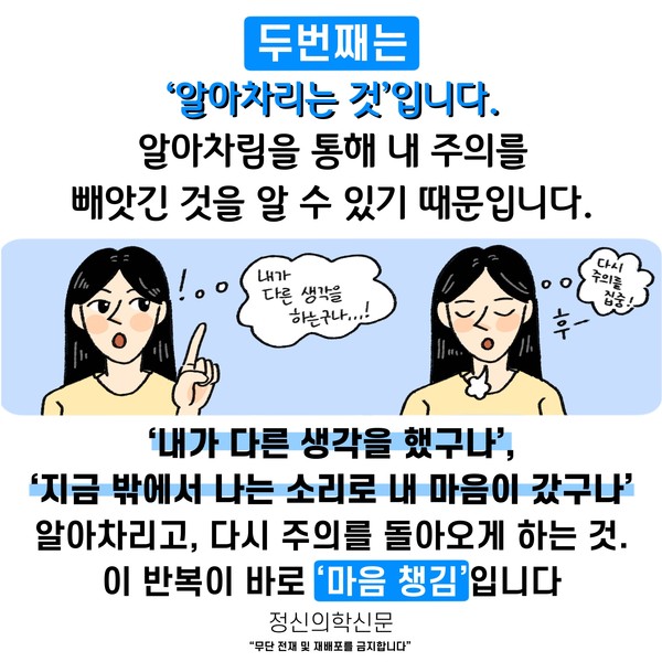채정호 정신건강의학과 전문의 채정호 정신건강의학과 전문의 전체기사 보기 채정호 전문의의 대표칼럼 [카드뉴스] 인간은 “Human Being” ‘Being’ 하는 시간 [불안, 나를 태우는 또 다른 나 - 4] [카드뉴스] 공황 발작이 와도 도망가지 않으려면 우리는 어디에서 불안을 느낄까요? 불안이 무엇인지 잘 알고 이해하면 도망가지 않을 수 있다 불안을 제대로 이해하기 – ‘불안’하면 모든 게 ‘문제’일까? 관련기사 ‘Being’ 하는 시간 [불안, 나를 태우는 또 다른 나 - 4] 키워드 #내마음의알고리즘 #마음챙김명상 #주의훈련 채정호 정신건강의학과 전문의 info.psynews@gmail.com 다른기사 보기 저작권자 © 정신의학신문 무단전재 및 재배포 금지 추천 뉴스 매 맞는 여성 증후군 - 사랑이라는 이름의 폭력이 남기는 상처 얼만큼 운동해야 우울증을 예방할까? 약만으로 부족할 때, 우울증에 효과적인 운동은 이것입니다 영웅의 숨겨진 아픔 - 소방관 트라우마 불안이 쉽게 사라지지 않는 뇌과학적 이유 [신간소개] 당신의 상처는 사적이지 않다 수면다원검사를 꼭 받아봐야 하는 사람 (Part 3) 우울증에 좋은 운동은 뭘까 댓글삭제 삭제한 댓글은 다시 복구할 수 없습니다. 그래도 삭제하시겠습니까? 비밀번호 닫기 기사 댓글 0 댓글 접기 댓글 내용입력 비회원 로그인 이름 비밀번호 댓글 내용입력 댓글쓰기 계정을 선택하시면 로그인·계정인증을 통해 댓글을 남기실 수 있습니다. 회원 로그인 비회원 글쓰기 이름 비밀번호 자동등록방지 로그인 옵션 창닫기 주요기사 대인기피증 사회불안장애 극복하기 [Doctor's Mail] 연속된 사업 실패, 재기를 위해 노력하지만 힘듭니다 아직은 괜찮습니다 6화 나는 언제나 완성되어가는 중이다 불안장애와 공황장애 어떻게 다른가요 수면의 질과 ADHD의 상호작용 약만으로 부족할 때, 우울증에 효과적인 운동은 이것입니다