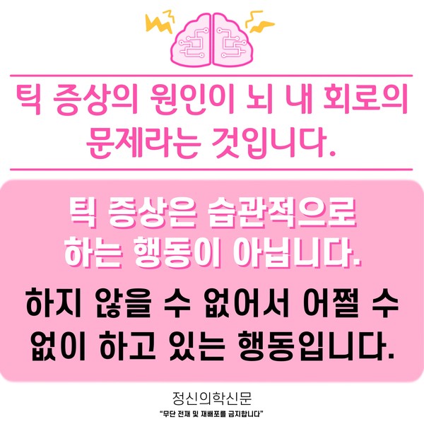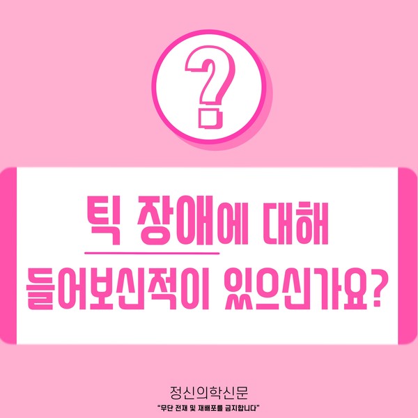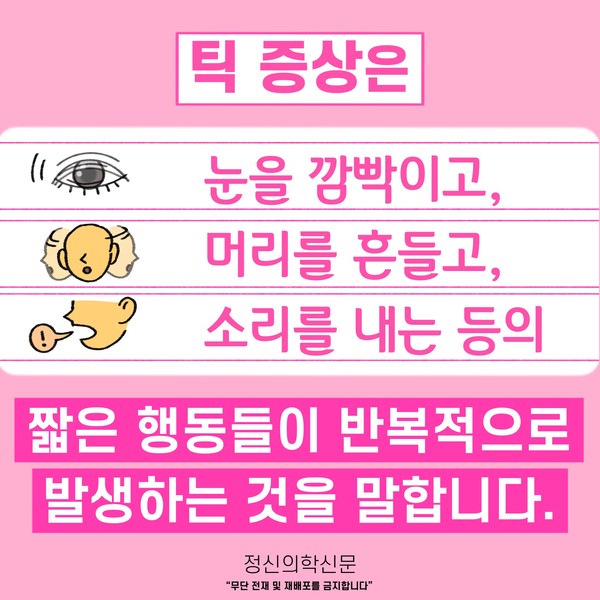 관련기사 틱 장애 - 혼내는 것은 답이 아닙니다. 키워드 #틱 #틱장애 #틱증상 김재성 정신건강의학과 전문의 info.psynews@gmail.com 다른기사 보기 저작권자 © 정신의학신문 무단전재 및 재배포 금지 추천 뉴스 매 맞는 여성 증후군 - 사랑이라는 이름의 폭력이 남기는 상처 얼만큼 운동해야 우울증을 예방할까? 약만으로 부족할 때, 우울증에 효과적인 운동은 이것입니다 영웅의 숨겨진 아픔 - 소방관 트라우마 불안이 쉽게 사라지지 않는 뇌과학적 이유 [신간소개] 당신의 상처는 사적이지 않다 수면다원검사를 꼭 받아봐야 하는 사람 (Part 3) 우울증에 좋은 운동은 뭘까 댓글삭제 삭제한 댓글은 다시 복구할 수 없습니다. 그래도 삭제하시겠습니까? 비밀번호 닫기 기사 댓글 0 댓글 접기 댓글 내용입력 비회원 로그인 이름 비밀번호 댓글 내용입력 댓글쓰기 계정을 선택하시면 로그인·계정인증을 통해 댓글을 남기실 수 있습니다. 회원 로그인 비회원 글쓰기 이름 비밀번호 자동등록방지 로그인 옵션 창닫기 주요기사 대인기피증 사회불안장애 극복하기 [Doctor's Mail] 연속된 사업 실패, 재기를 위해 노력하지만 힘듭니다 아직은 괜찮습니다 6화 나는 언제나 완성되어가는 중이다 불안장애와 공황장애 어떻게 다른가요 수면의 질과 ADHD의 상호작용 약만으로 부족할 때, 우울증에 효과적인 운동은 이것입니다