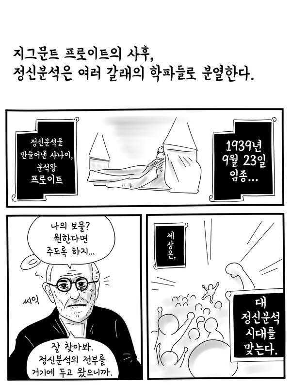 본격 정신의학 역사 만화 관련기사 5. 조현병의 아버지 (3) 5. 조현병의 아버지 (2) 5. 조현병의 아버지 (1) [정신의학 역사 만화] 6-3 "정신분석은 어떻게 치료하나요?" [정신의학 역사 만화] 7-1. 정신 약물의 시대 “그래서, 얼마나 더 약을 먹어야 할까요?”, 성급한 결론 지양하기 키워드 #정신분석 #정신과치료 #프로이트 려원기 정신건강의학과 전문의 info.psynews@gmail.com 다른기사 보기 저작권자 © 정신의학신문 무단전재 및 재배포 금지 추천 뉴스 매 맞는 여성 증후군 - 사랑이라는 이름의 폭력이 남기는 상처 얼만큼 운동해야 우울증을 예방할까? 영웅의 숨겨진 아픔 - 소방관 트라우마 약만으로 부족할 때, 우울증에 효과적인 운동은 이것입니다 불안이 쉽게 사라지지 않는 뇌과학적 이유 [신간소개] 당신의 상처는 사적이지 않다 수면다원검사를 꼭 받아봐야 하는 사람 (Part 3) 우울증에 좋은 운동은 뭘까 댓글삭제 삭제한 댓글은 다시 복구할 수 없습니다. 그래도 삭제하시겠습니까? 비밀번호 닫기 기사 댓글 4 댓글 접기 댓글 내용입력 비회원 로그인 이름 비밀번호 댓글 내용입력 댓글쓰기 계정을 선택하시면 로그인·계정인증을 통해 댓글을 남기실 수 있습니다. 회원 로그인 비회원 글쓰기 이름 비밀번호 자동등록방지 로그인 옵션 창닫기 댓글목록 최신순 추천순 욕설, 타인비방 등의 게시물은 예고 없이 삭제 될 수 있습니다. 영 2023-03-28 12:33:29 더보기 삭제하기 자전거짤 너무 웃겨요 ㅋㅋㅋㅋㅋㅋㅋㅋㅋㅋㅋㅋㅋㅋㅋㅋㅋㅋㅋㅋㅋㅋㅋ 김익명 2022-02-15 08:38:39 더보기 삭제하기 늘 재밌게 보고 있어요!!!! 자주 좀 올려주세요. 기다리다 목빠져요ㅜㅜ 감사합니다 2022-02-13 10:09:04 더보기 삭제하기 감사해용 무의식과 기억에 대해 관심이 많았는데 이미지화 되는 기억과 행동으로 나타나는 기억 등 더 자세히 기억에 대해 알게 되어서 좋았어요! 무의식에 관련된 내용도 잘 설명해주셔서 감사해요! 고퀄리티 만화 연재에 항상 감사드립니다. 하루하루 2022-02-13 09:12:14 더보기 삭제하기 우와... 정신분석 수업을 들을 때 정말 어렵기만 했던 내용들을 만화로 보니까 더 쉽게 이해할 수 있게 되네요.. 라깡의 이름이 안보이는게 신기하긴 하지만ㅎㅎ 2부도 기대하겠습니다! 주요기사 대인기피증 사회불안장애 극복하기 [Doctor's Mail] 연속된 사업 실패, 재기를 위해 노력하지만 힘듭니다 아직은 괜찮습니다 6화 나는 언제나 완성되어가는 중이다 불안장애와 공황장애 어떻게 다른가요 수면의 질과 ADHD의 상호작용 약만으로 부족할 때, 우울증에 효과적인 운동은 이것입니다
