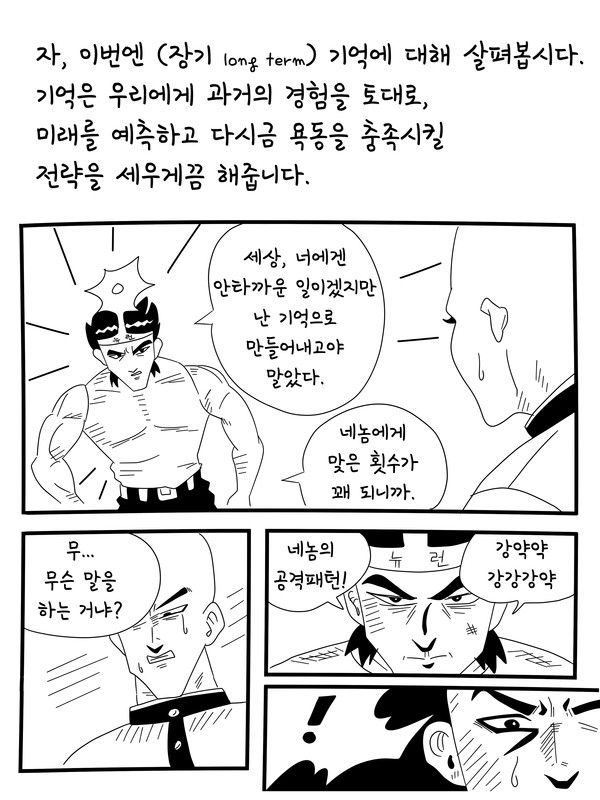감사합니다 2022-02-13 10:09:04 더보기 삭제하기 감사해용 무의식과 기억에 대해 관심이 많았는데 이미지화 되는 기억과 행동으로 나타나는 기억 등 더 자세히 기억에 대해 알게 되어서 좋았어요! 무의식에 관련된 내용도 잘 설명해주셔서 감사해요! 고퀄리티 만화 연재에 항상 감사드립니다.