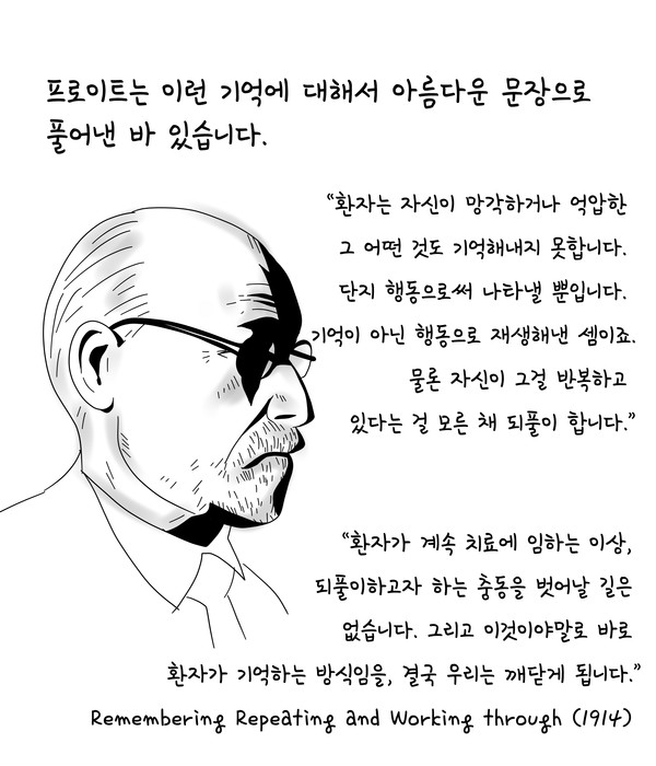 기사 댓글 4 댓글 접기 댓글 내용입력 비회원 로그인 이름 비밀번호 댓글 내용입력 댓글쓰기 계정을 선택하시면 로그인·계정인증을 통해 댓글을 남기실 수 있습니다. 회원 로그인 비회원 글쓰기 이름 비밀번호 자동등록방지 로그인 옵션 창닫기 댓글목록 최신순 추천순 욕설, 타인비방 등의 게시물은 예고 없이 삭제 될 수 있습니다. 영 2023-03-28 12:33:29 더보기 삭제하기 자전거짤 너무 웃겨요 ㅋㅋㅋㅋㅋㅋㅋㅋㅋㅋㅋㅋㅋㅋㅋㅋㅋㅋㅋㅋㅋㅋㅋ 김익명 2022-02-15 08:38:39 더보기 삭제하기 늘 재밌게 보고 있어요!!!! 자주 좀 올려주세요. 기다리다 목빠져요ㅜㅜ 감사합니다 2022-02-13 10:09:04 더보기 삭제하기 감사해용 무의식과 기억에 대해 관심이 많았는데 이미지화 되는 기억과 행동으로 나타나는 기억 등 더 자세히 기억에 대해 알게 되어서 좋았어요! 무의식에 관련된 내용도 잘 설명해주셔서 감사해요! 고퀄리티 만화 연재에 항상 감사드립니다. 하루하루 2022-02-13 09:12:14 더보기 삭제하기 우와... 정신분석 수업을 들을 때 정말 어렵기만 했던 내용들을 만화로 보니까 더 쉽게 이해할 수 있게 되네요.. 라깡의 이름이 안보이는게 신기하긴 하지만ㅎㅎ 2부도 기대하겠습니다!