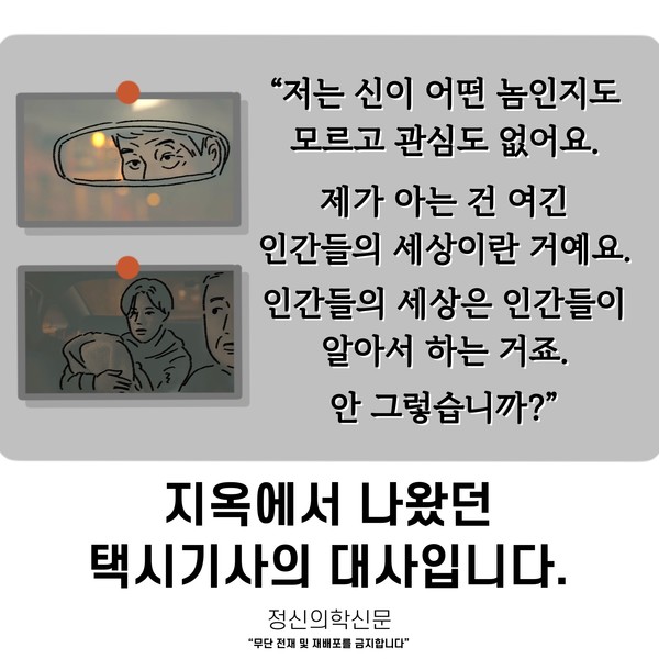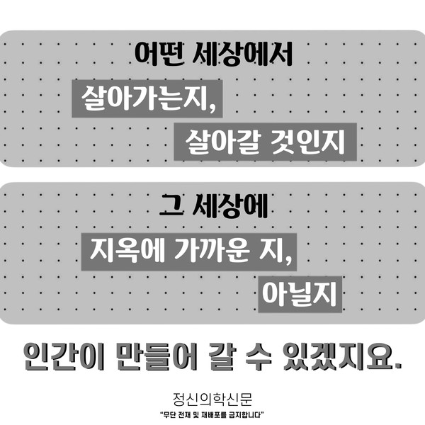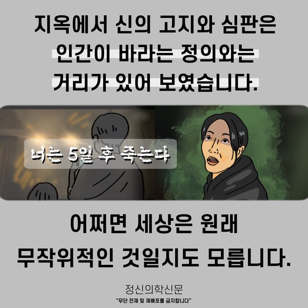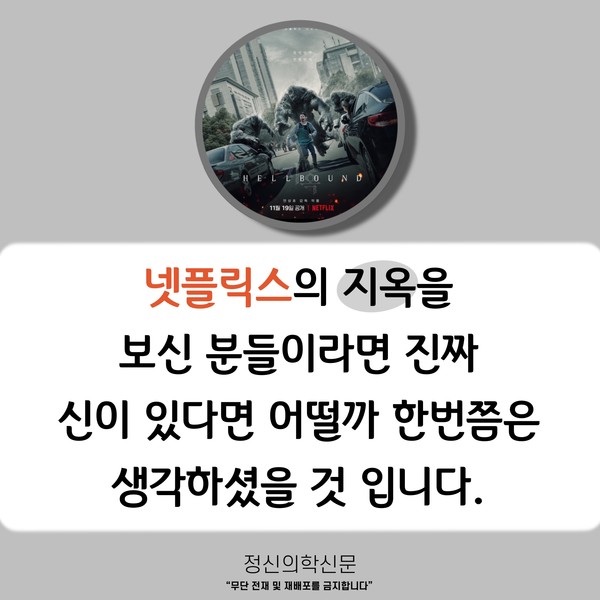 관련기사 우리는 지옥에 있습니까? - 넷플릭스 [지옥] (스포일러 포함) 키워드 #지옥 #넷플릭스 #삶 #인간 정정엽 정신건강의학과 전문의 info.psynews@gmail.com 다른기사 보기 저작권자 © 정신의학신문 무단전재 및 재배포 금지 추천 뉴스 매 맞는 여성 증후군 - 사랑이라는 이름의 폭력이 남기는 상처 얼만큼 운동해야 우울증을 예방할까? 영웅의 숨겨진 아픔 - 소방관 트라우마 약만으로 부족할 때, 우울증에 효과적인 운동은 이것입니다 불안이 쉽게 사라지지 않는 뇌과학적 이유 [신간소개] 당신의 상처는 사적이지 않다 수면다원검사를 꼭 받아봐야 하는 사람 (Part 3) 우울증에 좋은 운동은 뭘까 댓글삭제 삭제한 댓글은 다시 복구할 수 없습니다. 그래도 삭제하시겠습니까? 비밀번호 닫기 기사 댓글 0 댓글 접기 댓글 내용입력 비회원 로그인 이름 비밀번호 댓글 내용입력 댓글쓰기 계정을 선택하시면 로그인·계정인증을 통해 댓글을 남기실 수 있습니다. 회원 로그인 비회원 글쓰기 이름 비밀번호 자동등록방지 로그인 옵션 창닫기 주요기사 대인기피증 사회불안장애 극복하기 [Doctor's Mail] 연속된 사업 실패, 재기를 위해 노력하지만 힘듭니다 아직은 괜찮습니다 6화 나는 언제나 완성되어가는 중이다 불안장애와 공황장애 어떻게 다른가요 수면의 질과 ADHD의 상호작용 약만으로 부족할 때, 우울증에 효과적인 운동은 이것입니다