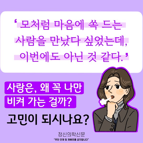 관련기사 [관계] 영화 ‘비포 선라이즈’로 보는 사랑의 3단계 키워드 #사랑 #연애 #집착 #불안 정신의학신문 info.psynews@gmail.com 다른기사 보기 저작권자 © 정신의학신문 무단전재 및 재배포 금지 추천 뉴스 매 맞는 여성 증후군 - 사랑이라는 이름의 폭력이 남기는 상처 얼만큼 운동해야 우울증을 예방할까? 영웅의 숨겨진 아픔 - 소방관 트라우마 약만으로 부족할 때, 우울증에 효과적인 운동은 이것입니다 불안이 쉽게 사라지지 않는 뇌과학적 이유 [신간소개] 당신의 상처는 사적이지 않다 수면다원검사를 꼭 받아봐야 하는 사람 (Part 3) 우울증에 좋은 운동은 뭘까 댓글삭제 삭제한 댓글은 다시 복구할 수 없습니다. 그래도 삭제하시겠습니까? 비밀번호 닫기 기사 댓글 0 댓글 접기 댓글 내용입력 비회원 로그인 이름 비밀번호 댓글 내용입력 댓글쓰기 계정을 선택하시면 로그인·계정인증을 통해 댓글을 남기실 수 있습니다. 회원 로그인 비회원 글쓰기 이름 비밀번호 자동등록방지 로그인 옵션 창닫기 주요기사 대인기피증 사회불안장애 극복하기 [Doctor's Mail] 연속된 사업 실패, 재기를 위해 노력하지만 힘듭니다 아직은 괜찮습니다 6화 나는 언제나 완성되어가는 중이다 불안장애와 공황장애 어떻게 다른가요 수면의 질과 ADHD의 상호작용 약만으로 부족할 때, 우울증에 효과적인 운동은 이것입니다