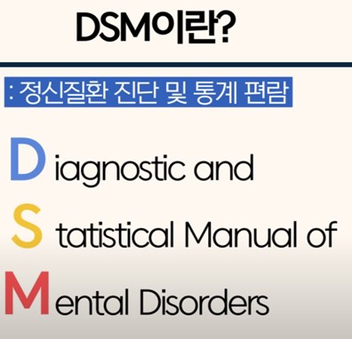 그래서 지금 대부분의 국가에서는 미국에서 만든 DSM이라는 진단 기준을 공통적으로 사용하고 있습니다. 일종의 의학적 공용어라고 할 수 있겠지요.